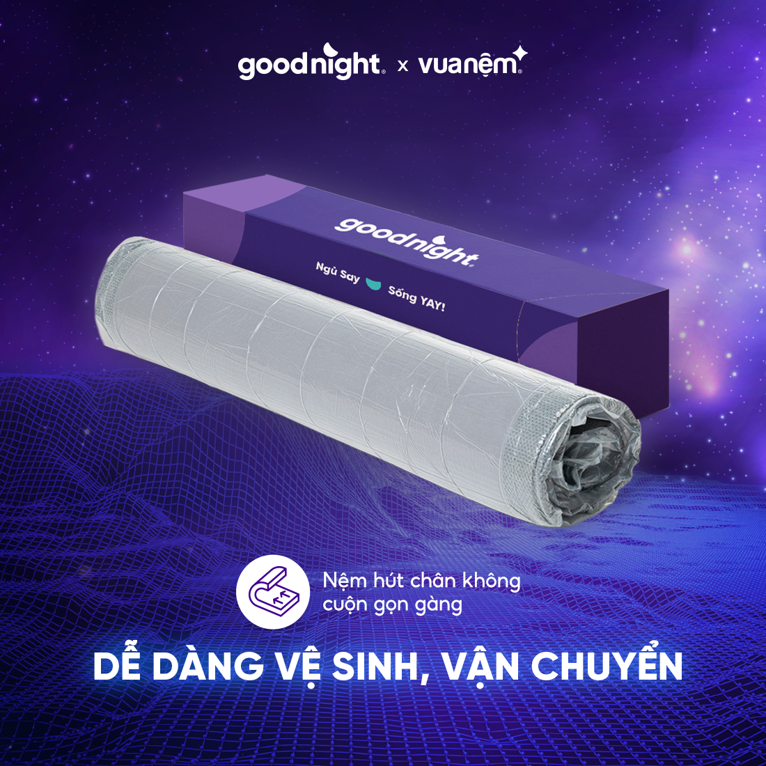 Hành trình của Goodnight bắt đầu từ năm 2015, với 10 năm không ngừng lắng nghe khách hàng và luôn giữ tinh thần đổi mới. Các sản phẩm nệm Hybrid nhà Goodnight được thiết kế bởi đội ngũ chuyên gia hàng đầu, ứng dụng công nghệ hiện đại kết hợp các vật liệu cao cấp – để tạo nên trải nghiệm nghỉ ngơi thoải mái, bền bỉ và tối ưu chi phí.