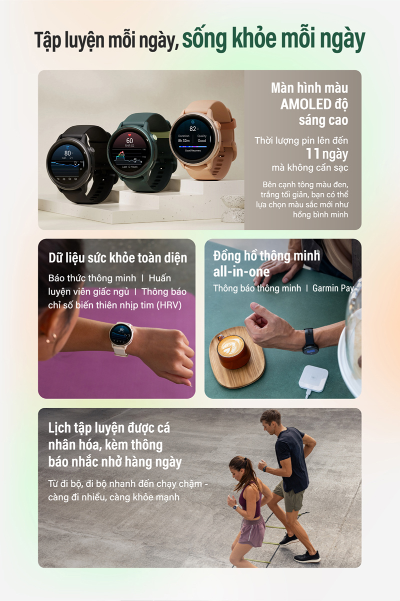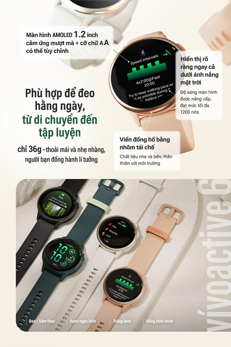 [New] Đồng hồ thông minh Garmin vívoactive 6 (Black/LunarGold/Green/Pink) - Hàng chính hãng