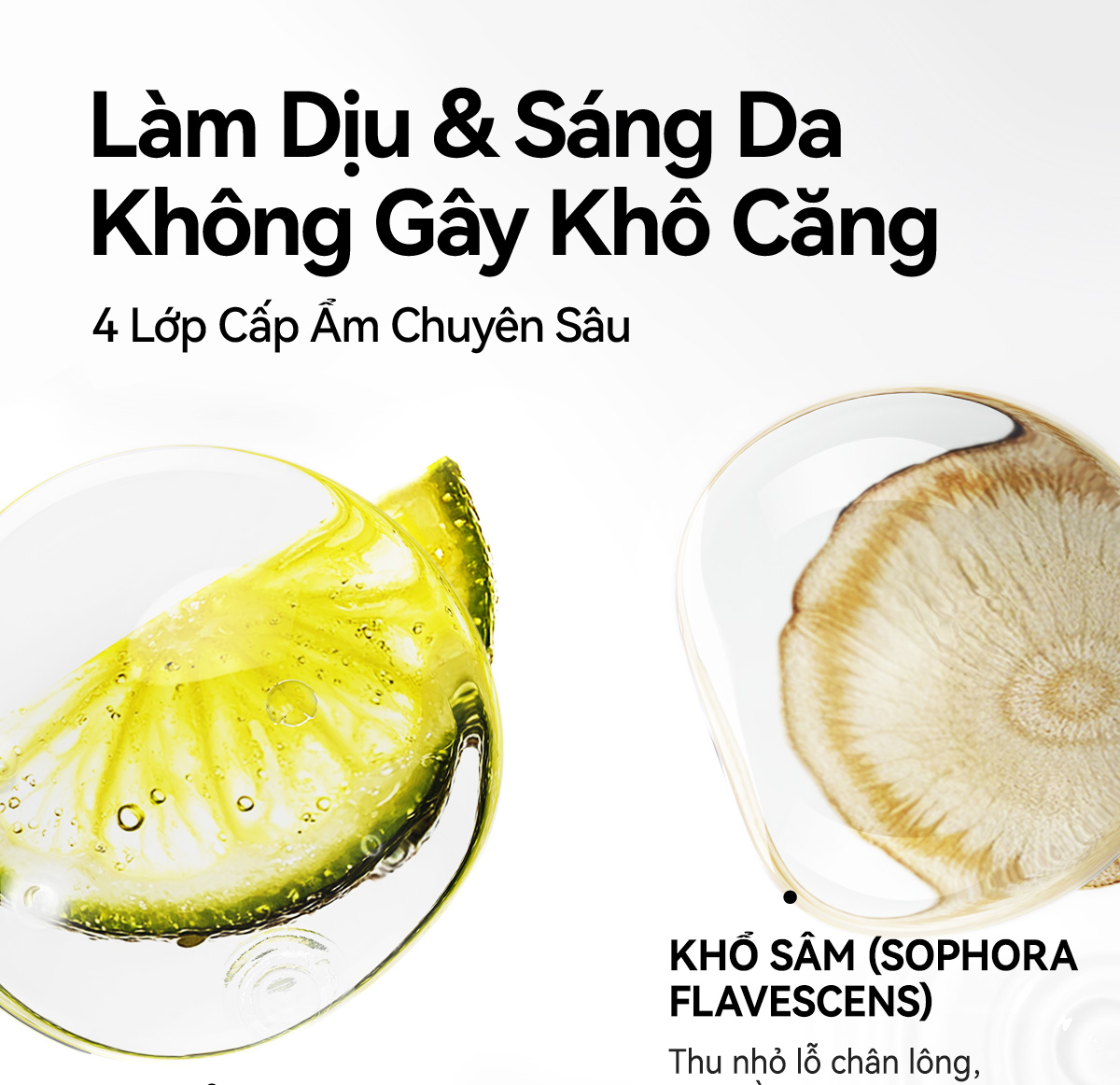 - Làm dịu & sáng da, không gây khô căng sau khi sử dụng