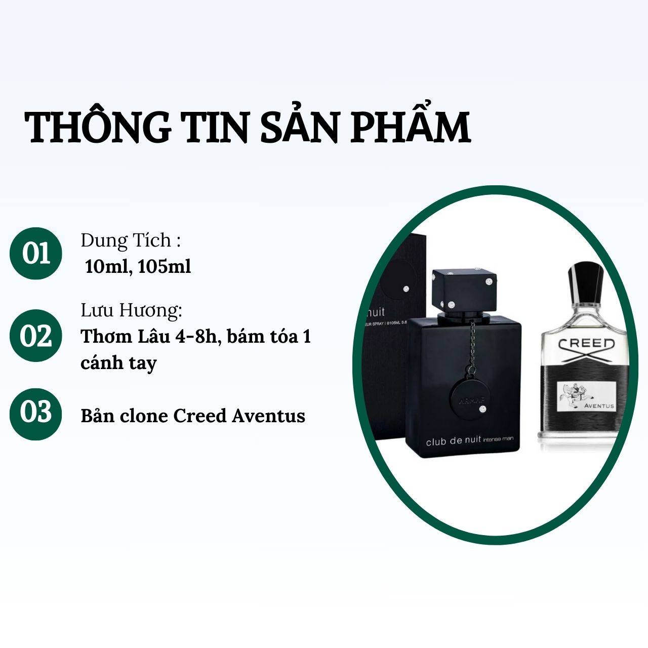 Nước hoa nam Armaf Club De Nuit Intense Man 10ml chính hãng PEMIKI nam tính mạnh mẽ