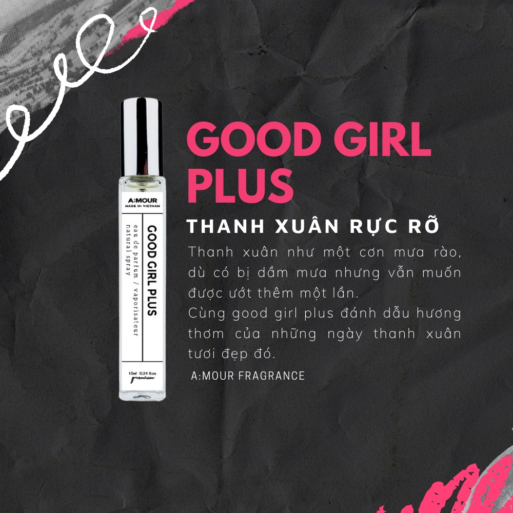 ✔️ Dòng sản phẩm nước hoa GOOD GIRL PLUS - A:MOUR muốn hướng đến các cô gái dịu dàng, nhã nhặn và thanh lịch.