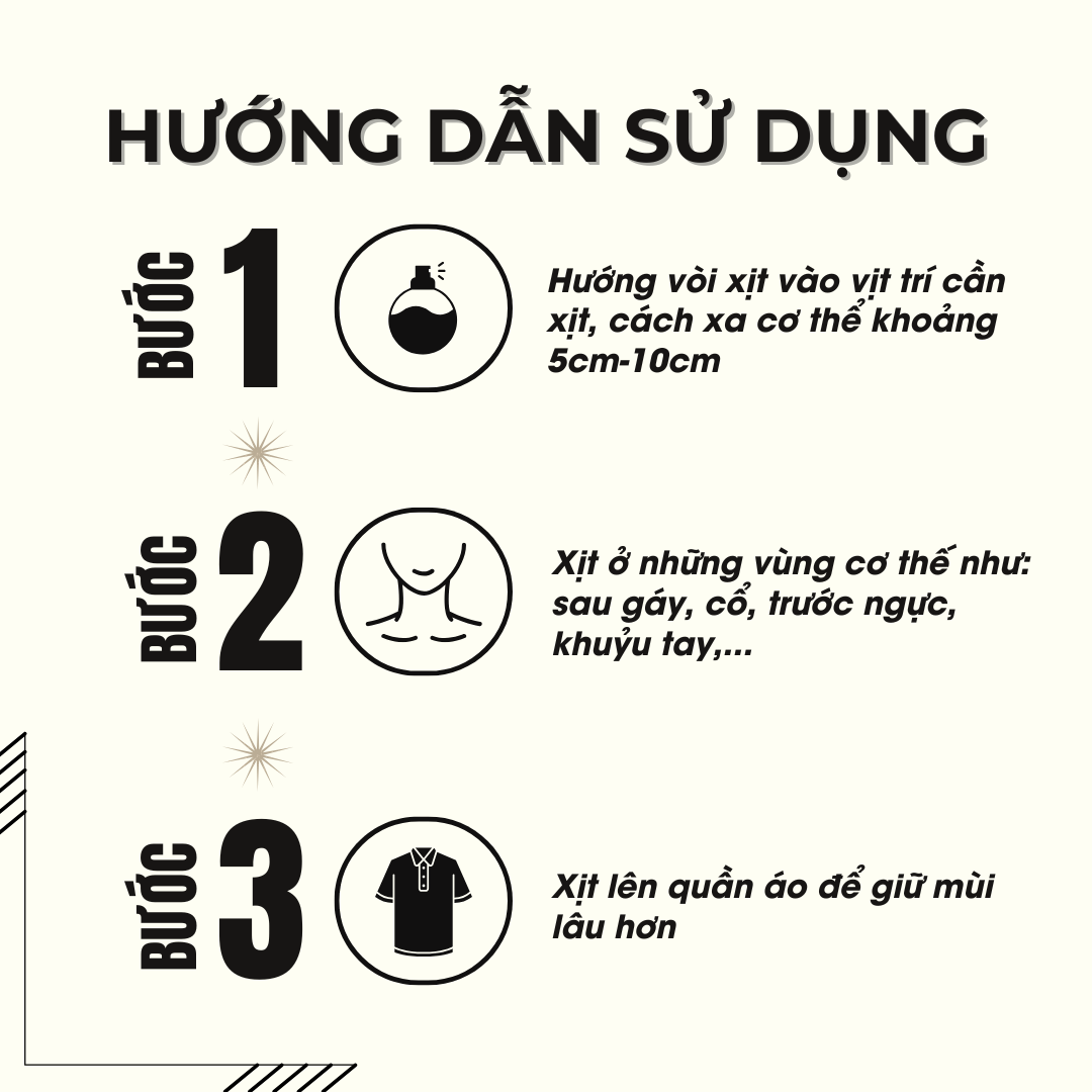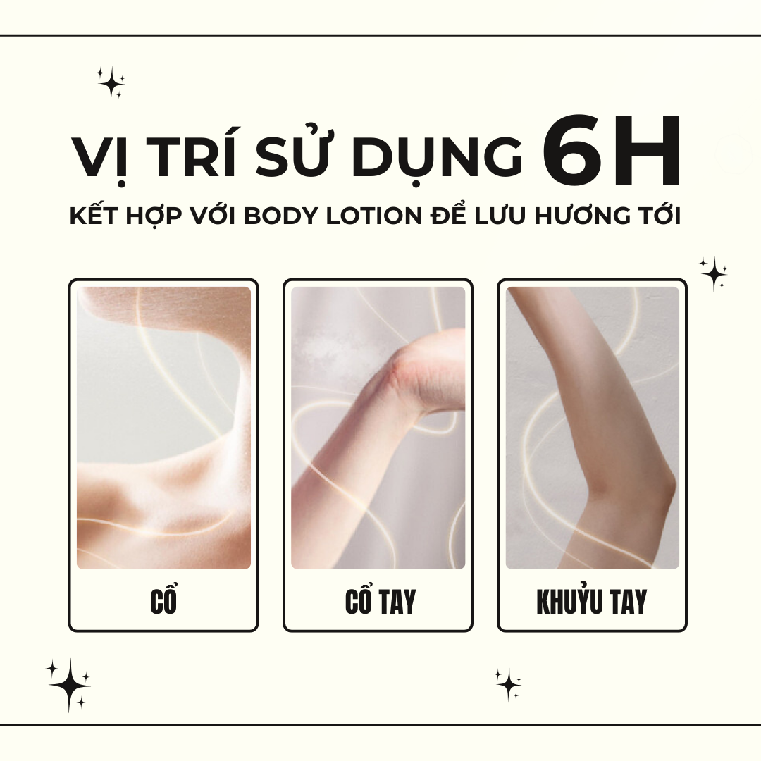 Độ lưu hương: Khoảng 6-8h trên da (tuỳ cơ địa), toả hương trong phạm vi 1m