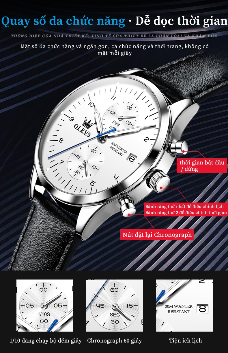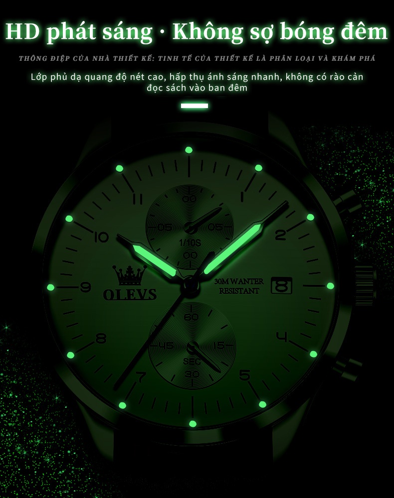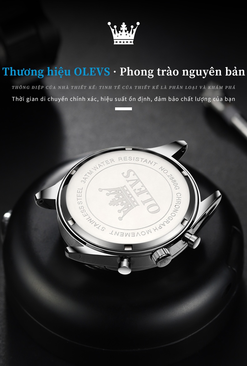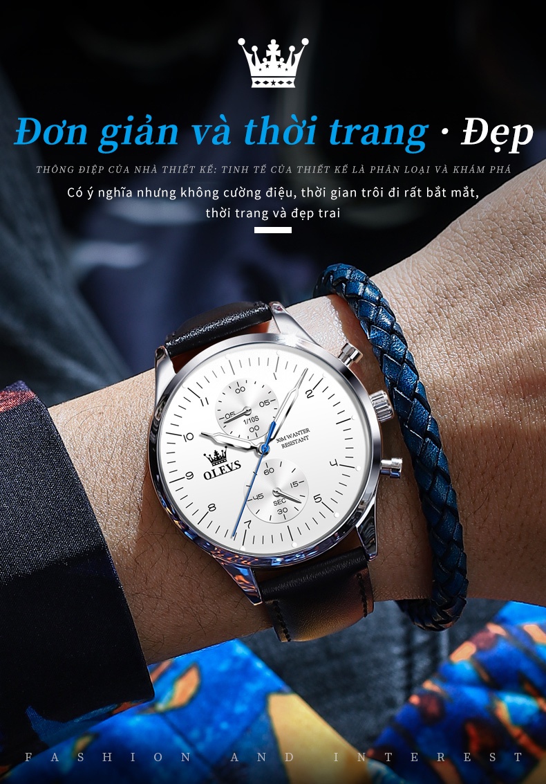 OLEVS 2880 Đồng hồ nam chính hãng Dây da có chức năng Lịch chống nước phát sáng Mặt số