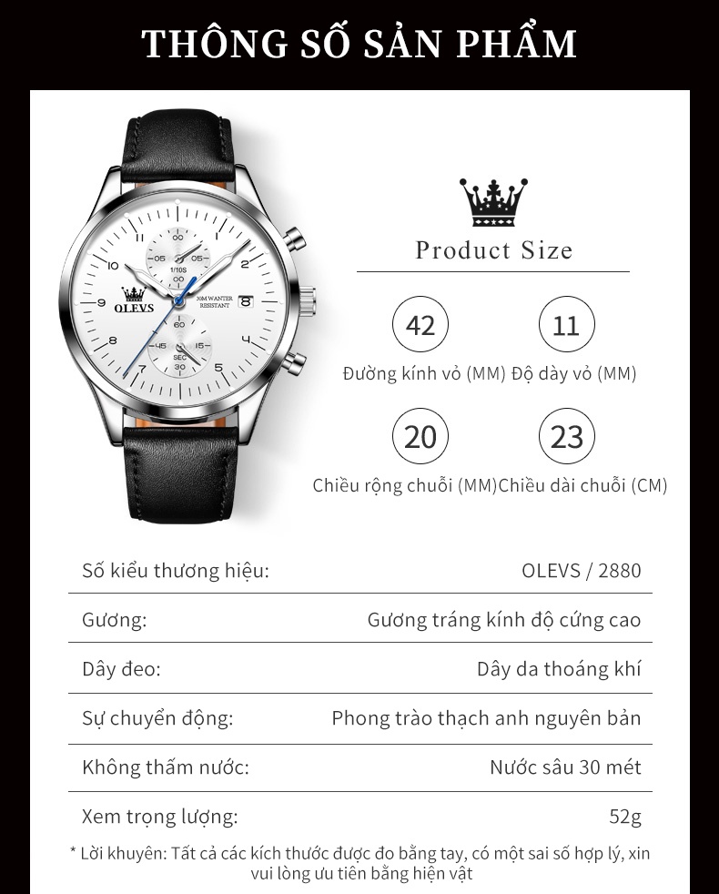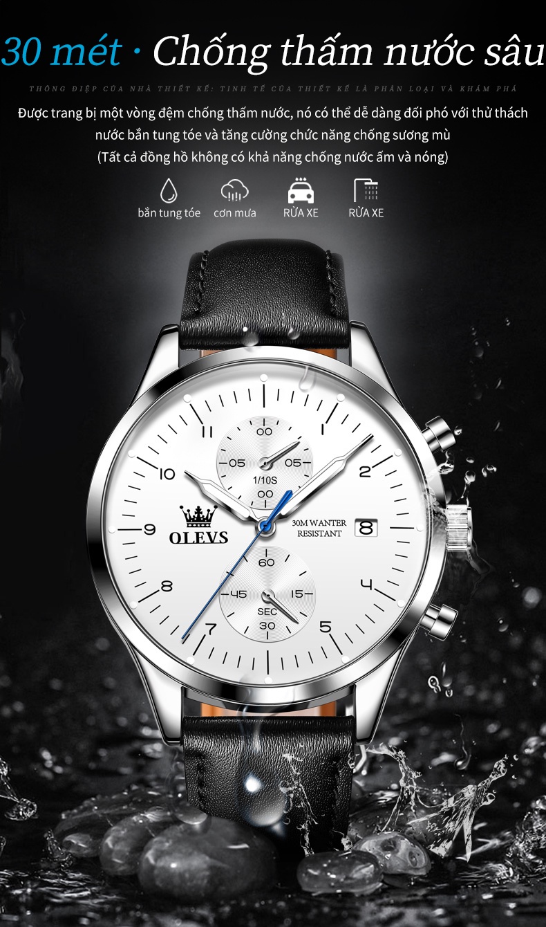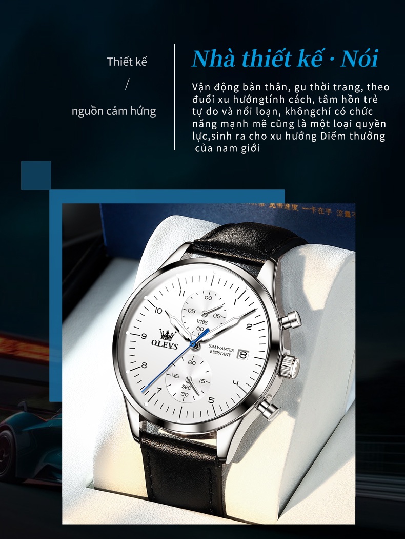 OLEVS 2880 Đồng hồ nam chính hãng Dây da có chức năng Lịch chống nước phát sáng Mặt số