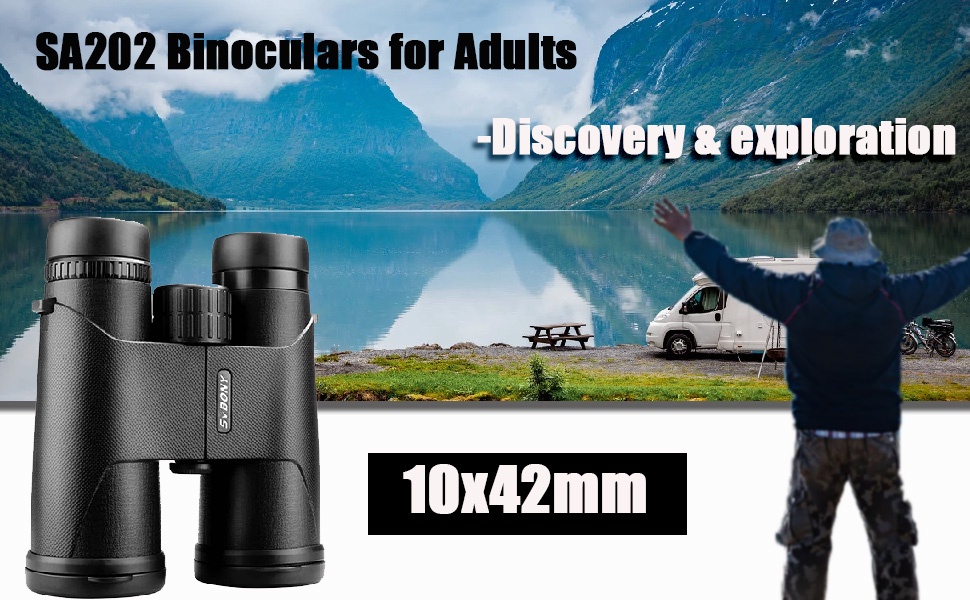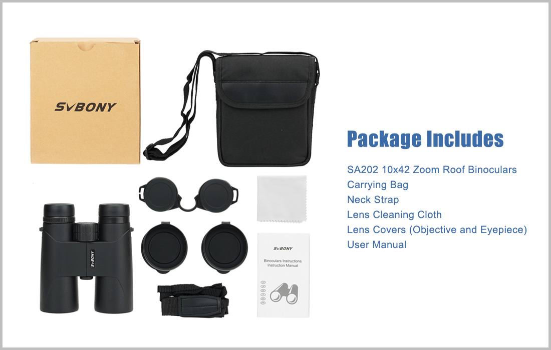 Ống nhòm công suất cao SVBONY SA202 10x42 Ống kính FMC Dây đeo cổ Túi đựng tầm xa nhỏ gọn dành cho người lớn và bắt ong Xem chim Đi bộ đường dài Buổi hòa nhạc cắm trại