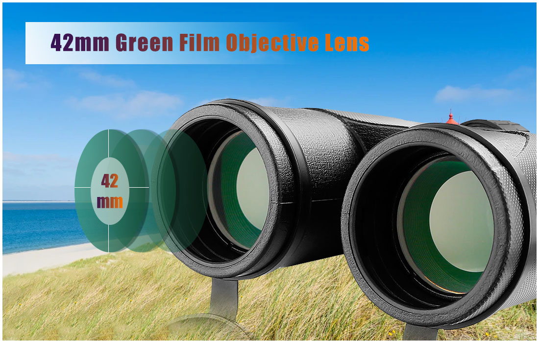 Vật kính đa lớp phủ hoàn toàn màu xanh lá cây 42mm và lăng kính BK7 đảm bảo độ truyền cao cho khẩu độ sáng hơn và rõ ràng hơn, đồng thời cung cấp hình ảnh rõ ràng, chi tiết và độ tương phản cao, đồng thời mang lại trải nghiệm quan sát dễ dàng ngay cả trong điều kiện ánh sáng yếu.