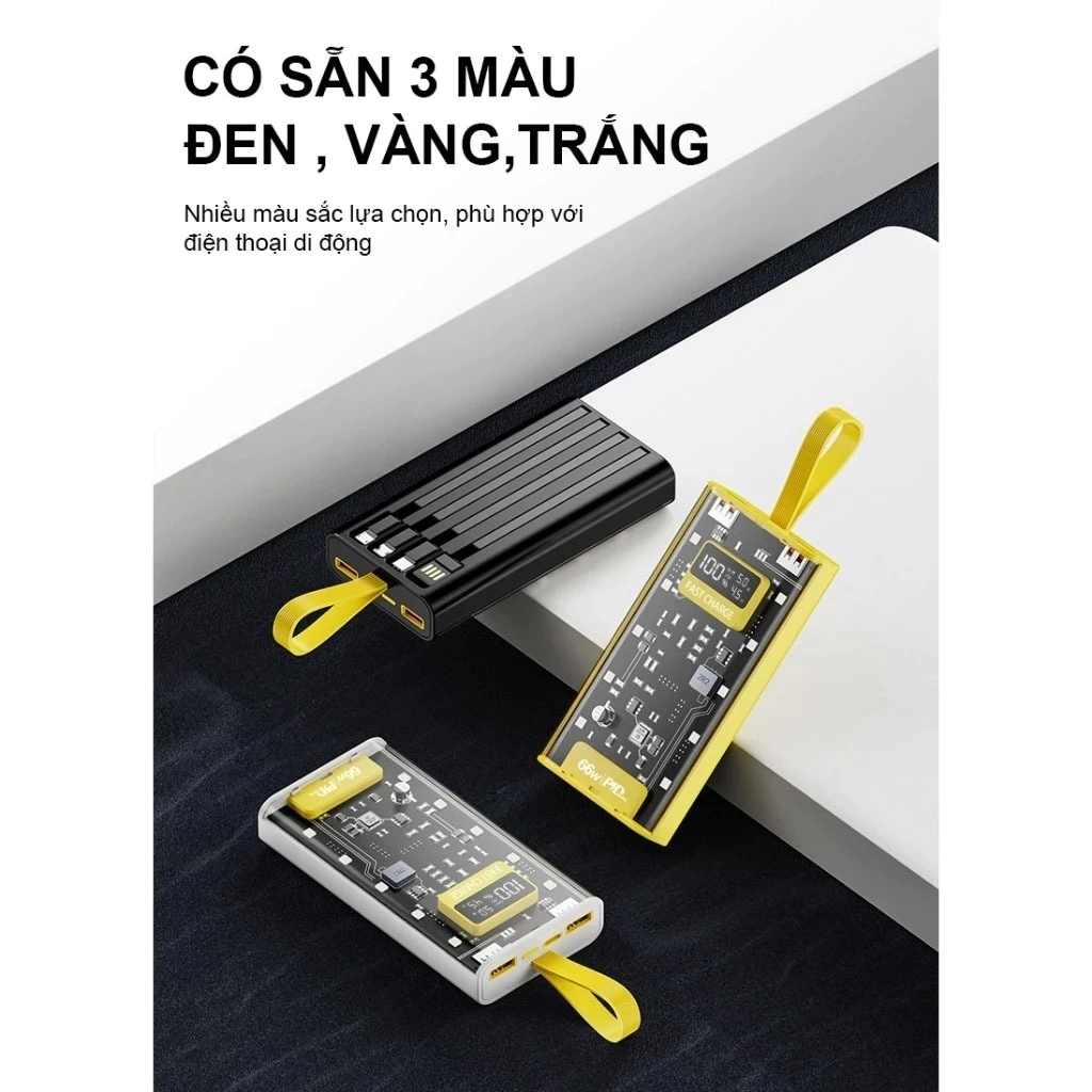 Pin DỰ PHÒNG 30.000mAh TRONG SUỐT – NHANH 120W và PD25W 4 DÂY SẠC TÍCH HỢP – 6 Cổng - MÀN HÌNH LED%