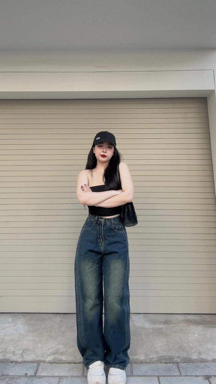 Quần jean Nữ ống rộng sọc line có Bigsize