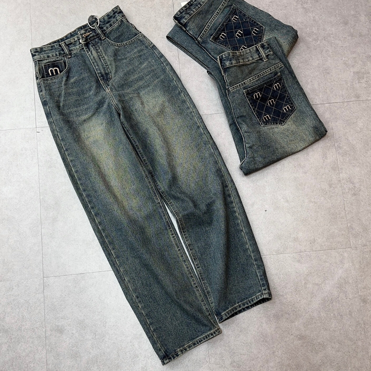Quần Jean Nữ Ống Suông Màu Đậm Túi Thêu Chữ M Q288