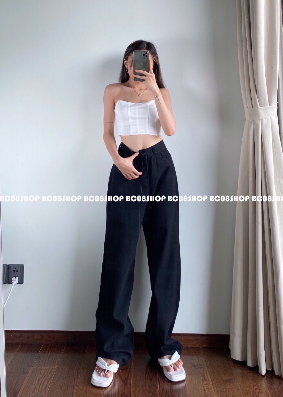 - Quần dáng dài, lưng cao