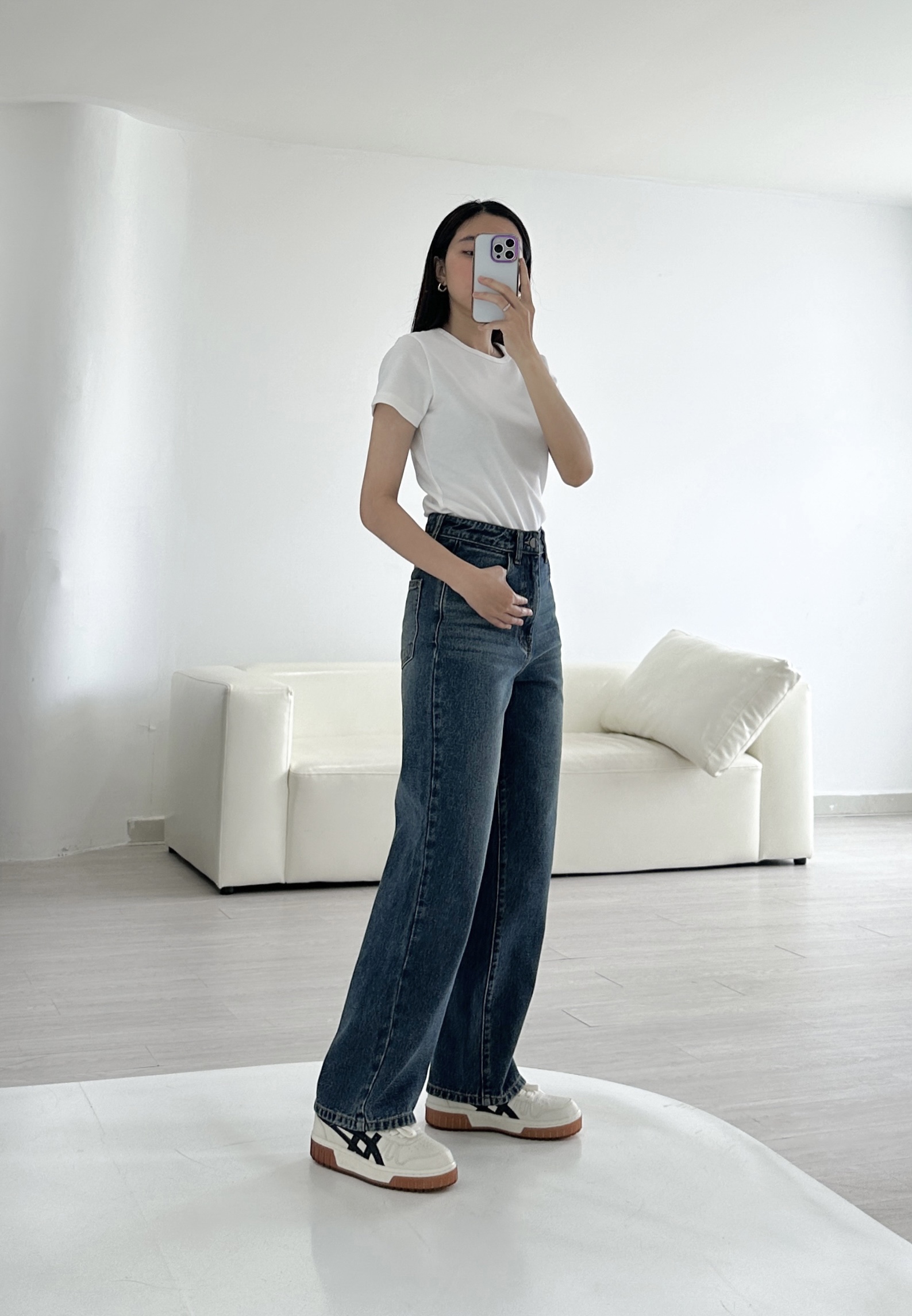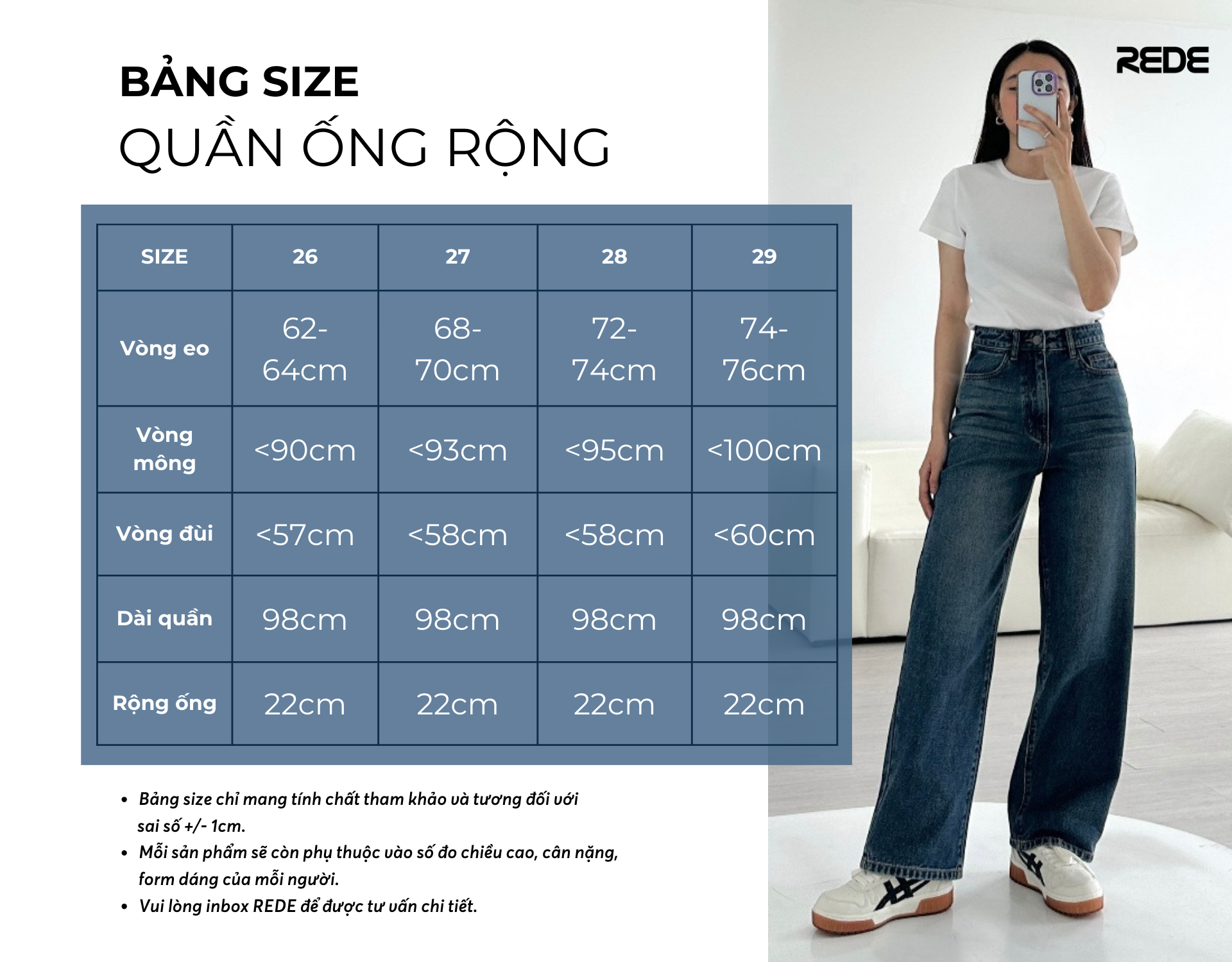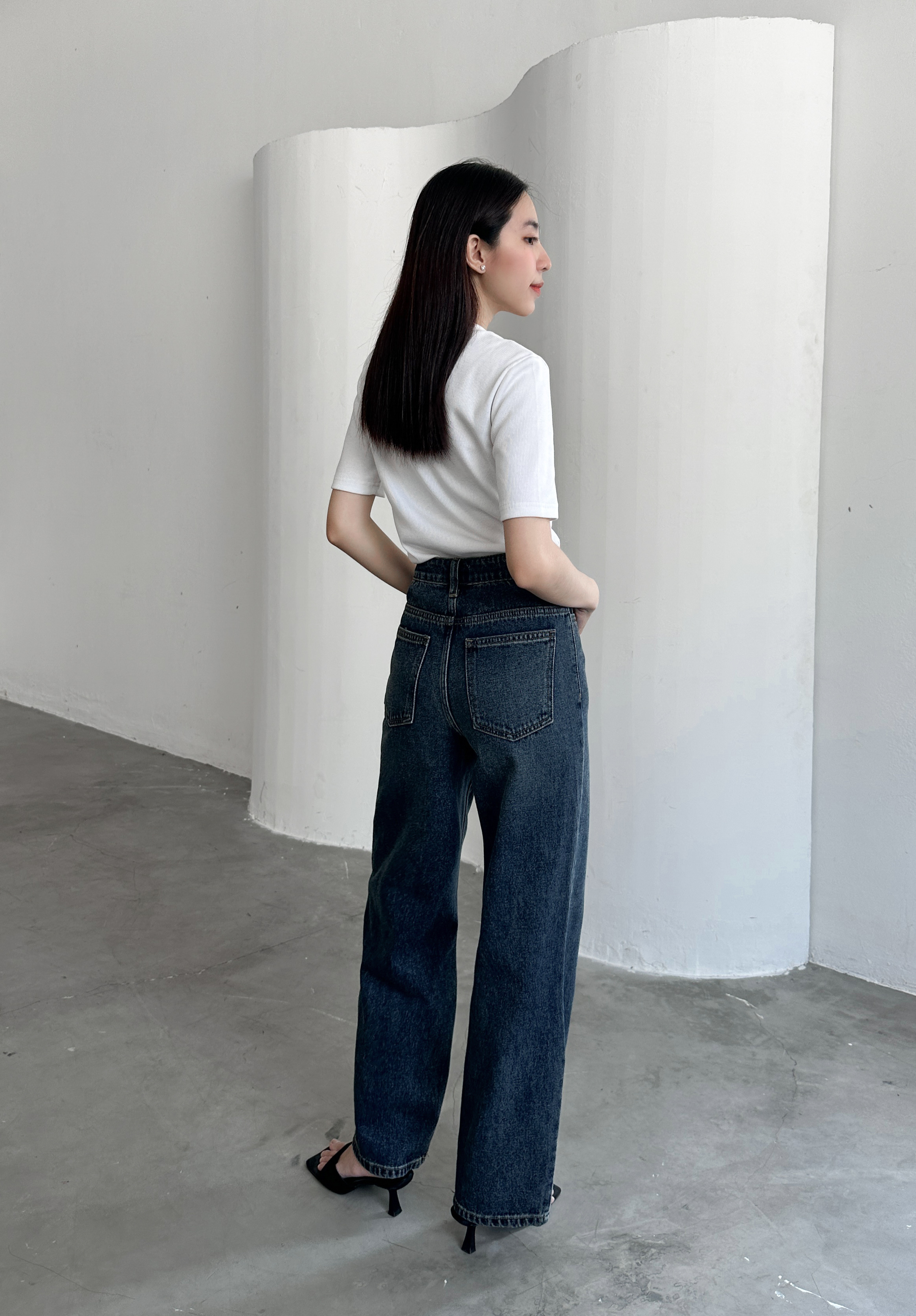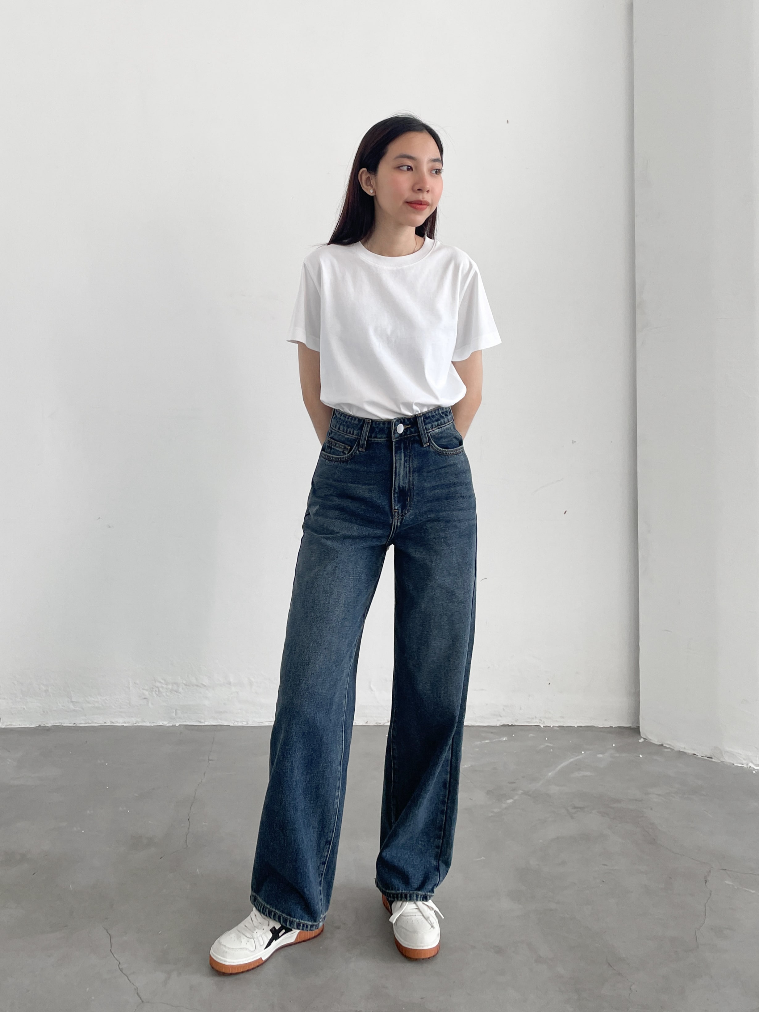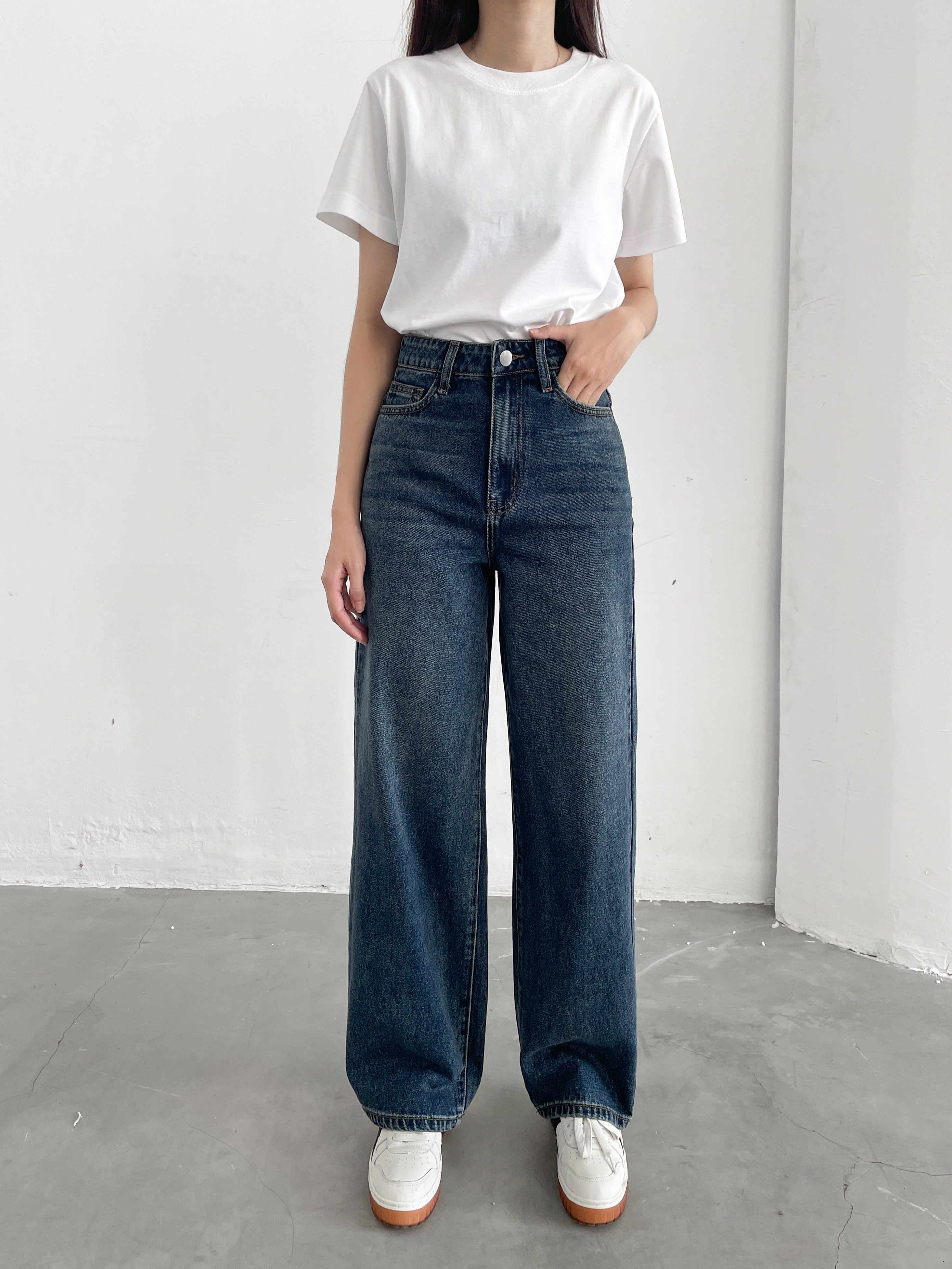 ☘ Dáng quần: Ống suông rộng, lưng cạp cao không gây thùng thình, thô kệch cho phần thân dưới