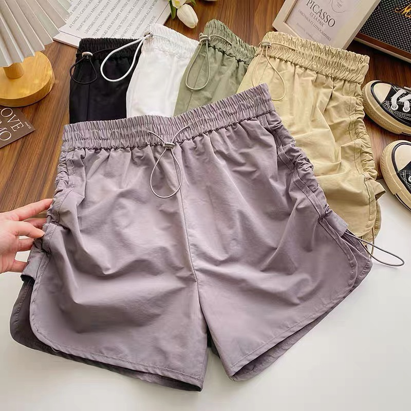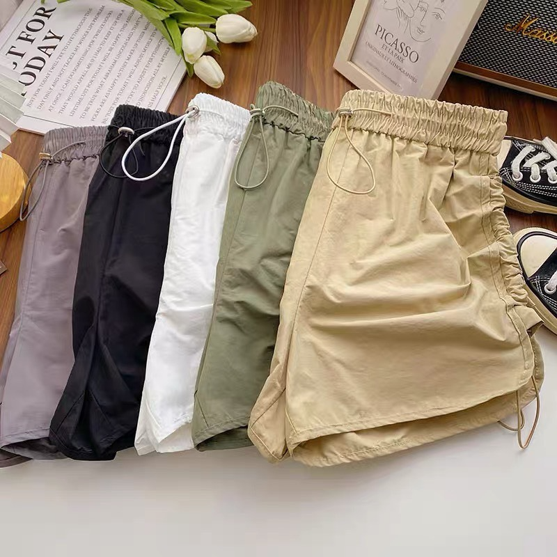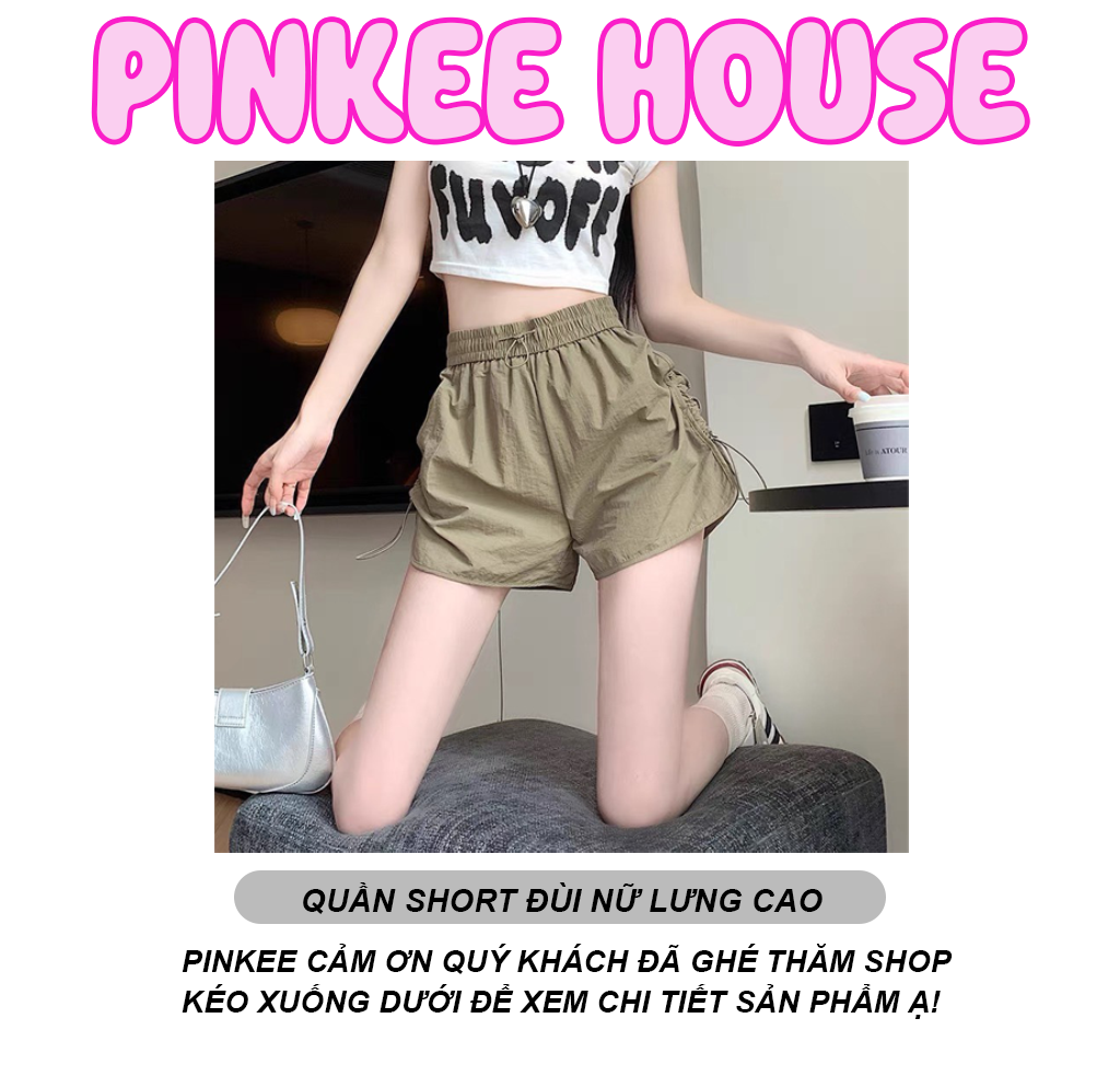 Quần Short Đùi Nữ Lưng Cao Ống Rộng Vải Gió Nhăn Phối Dây Rút Vải Phong Cách Vintage MQ020
