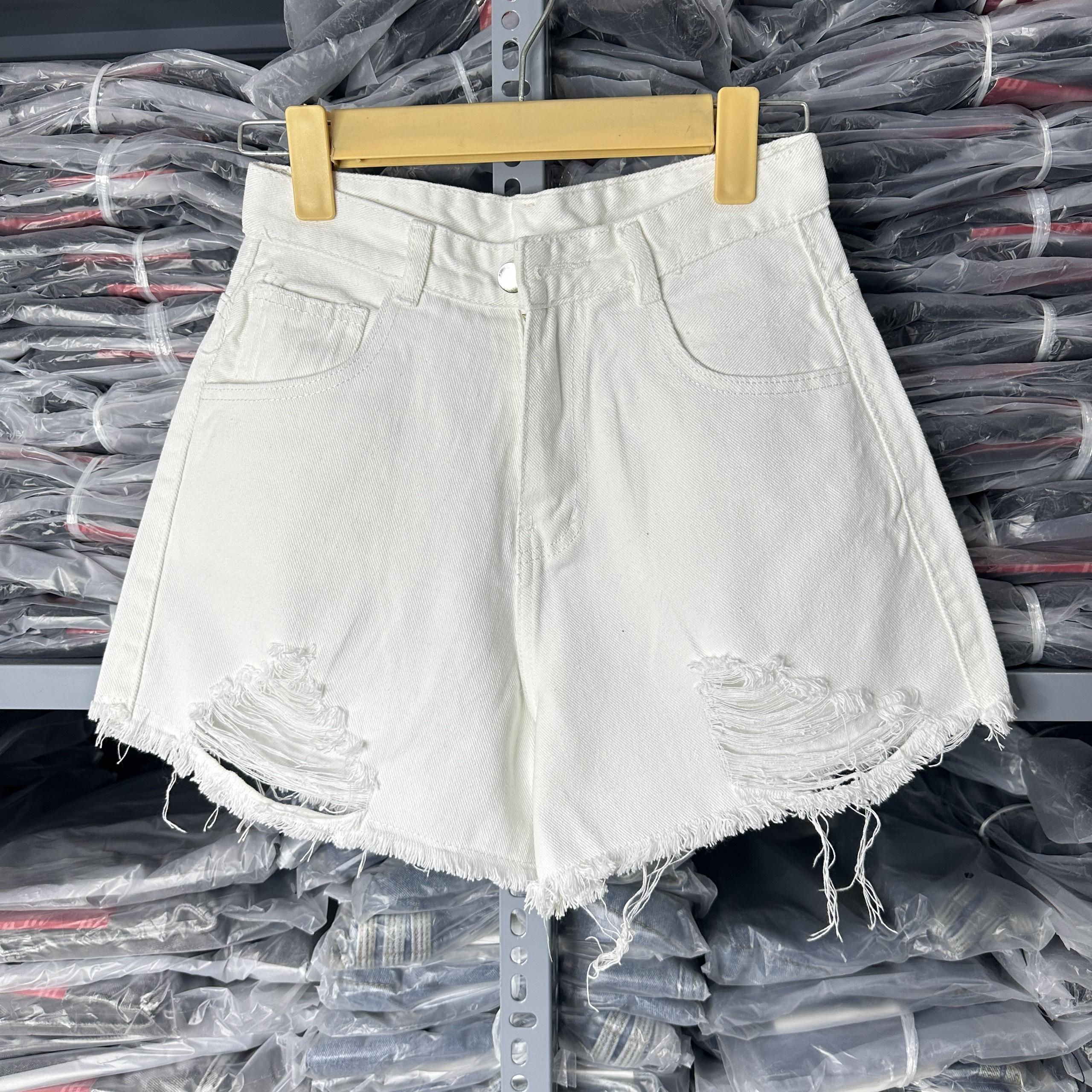 Quần short jean nữ trắng vài denim rách bền đẹp Pants Có Túi
