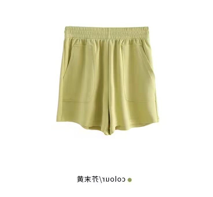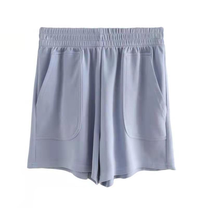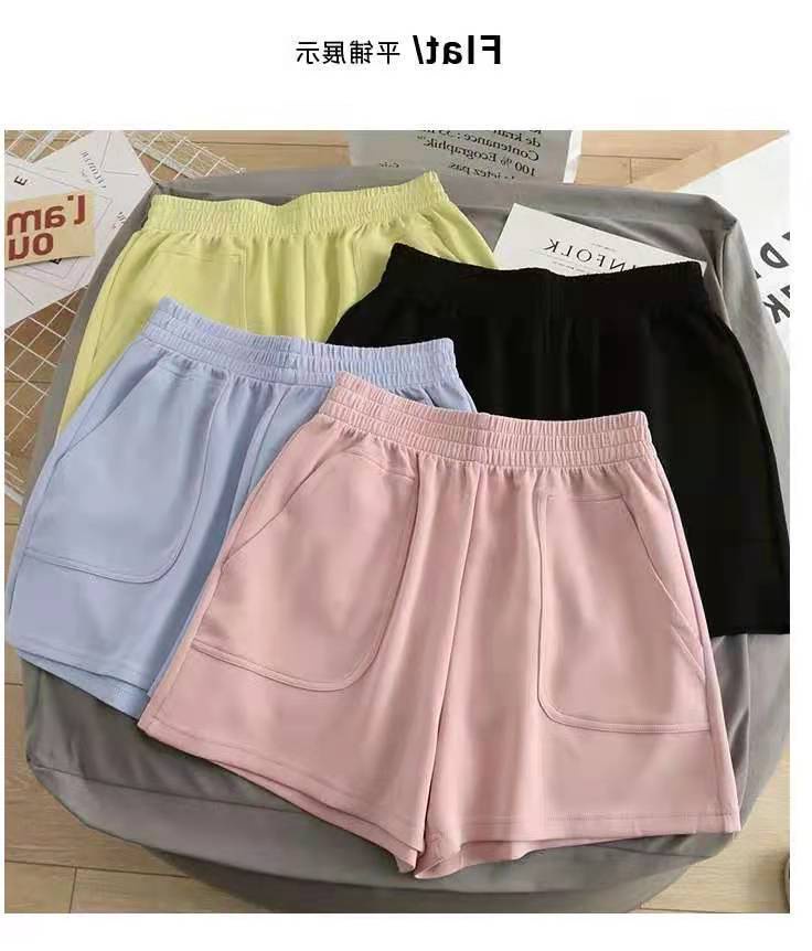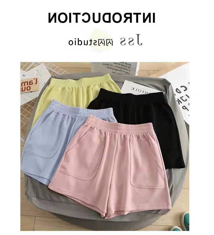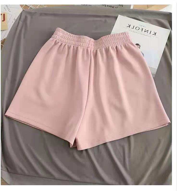 Quần short thể thao vải cotton mỏng lưng cao ống rộng màu trơn thời trang mùa hè phong cách Hàn Quốc cho nữ