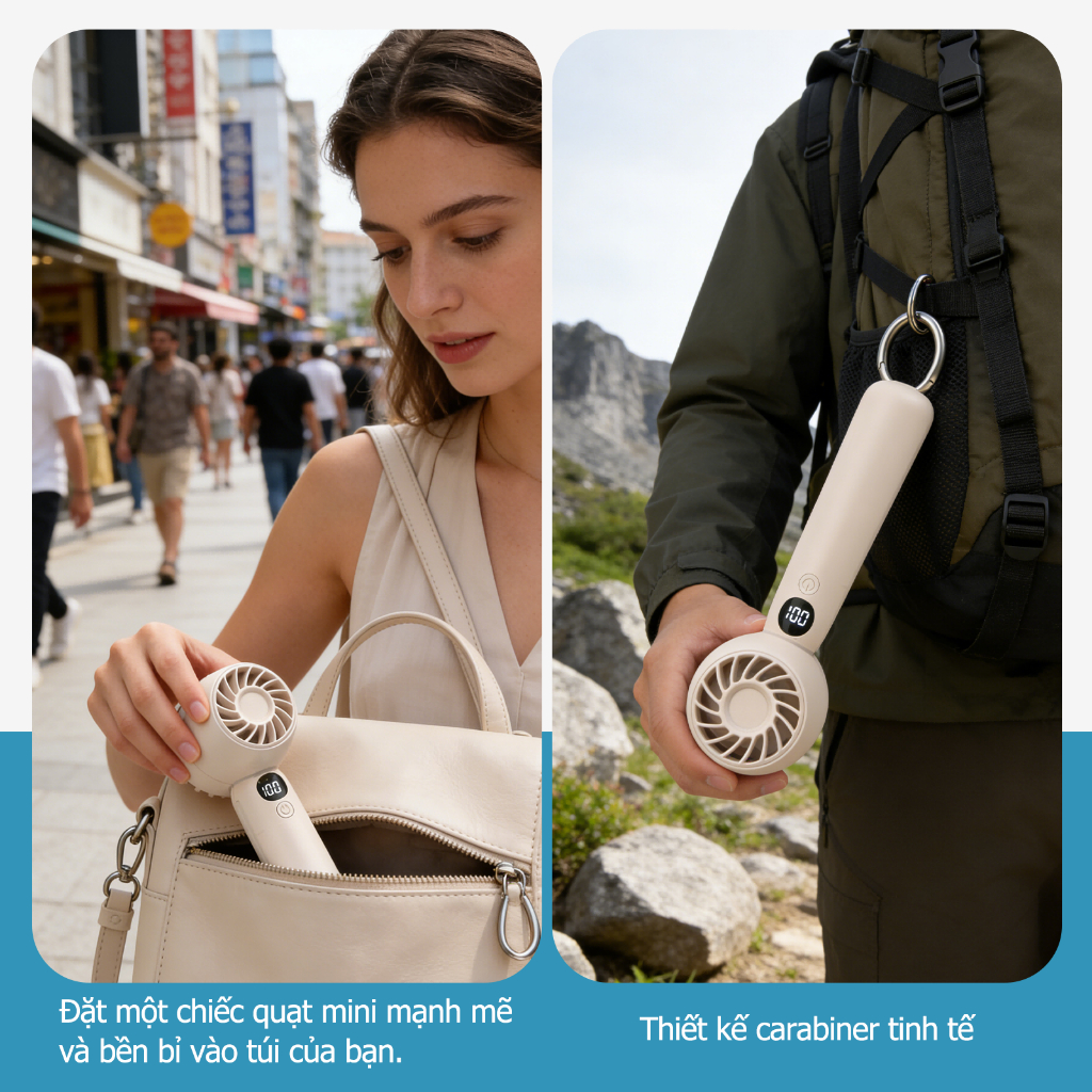 Quạt cầm tay màn hình kỹ thuật số LED Ucloudsome, với 5 tốc độ gió có thể điều chỉnh và thiết kế di động mini.