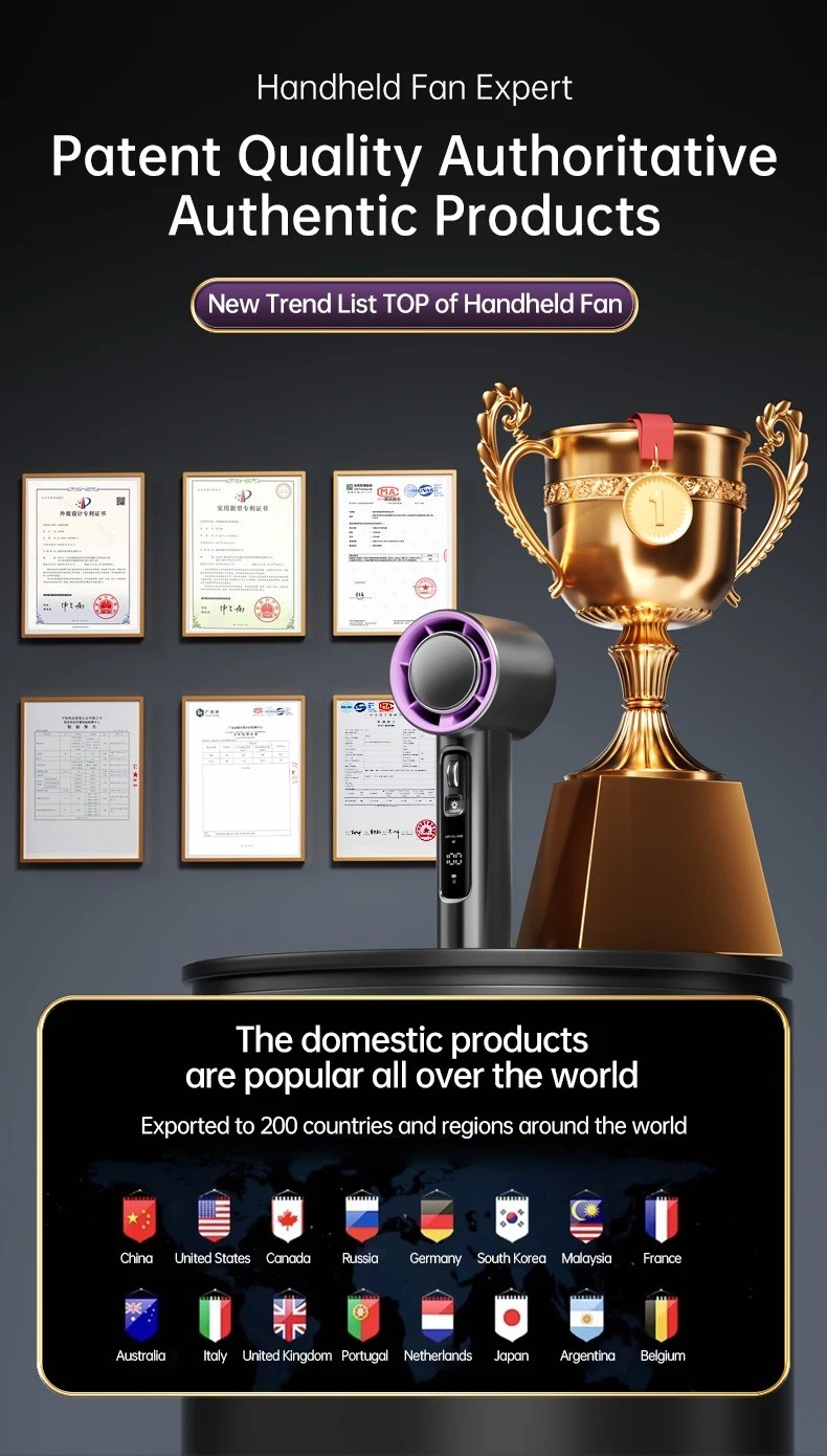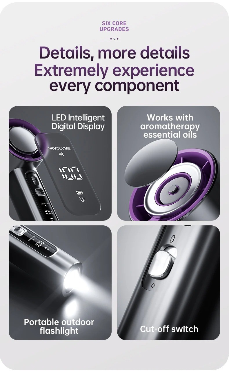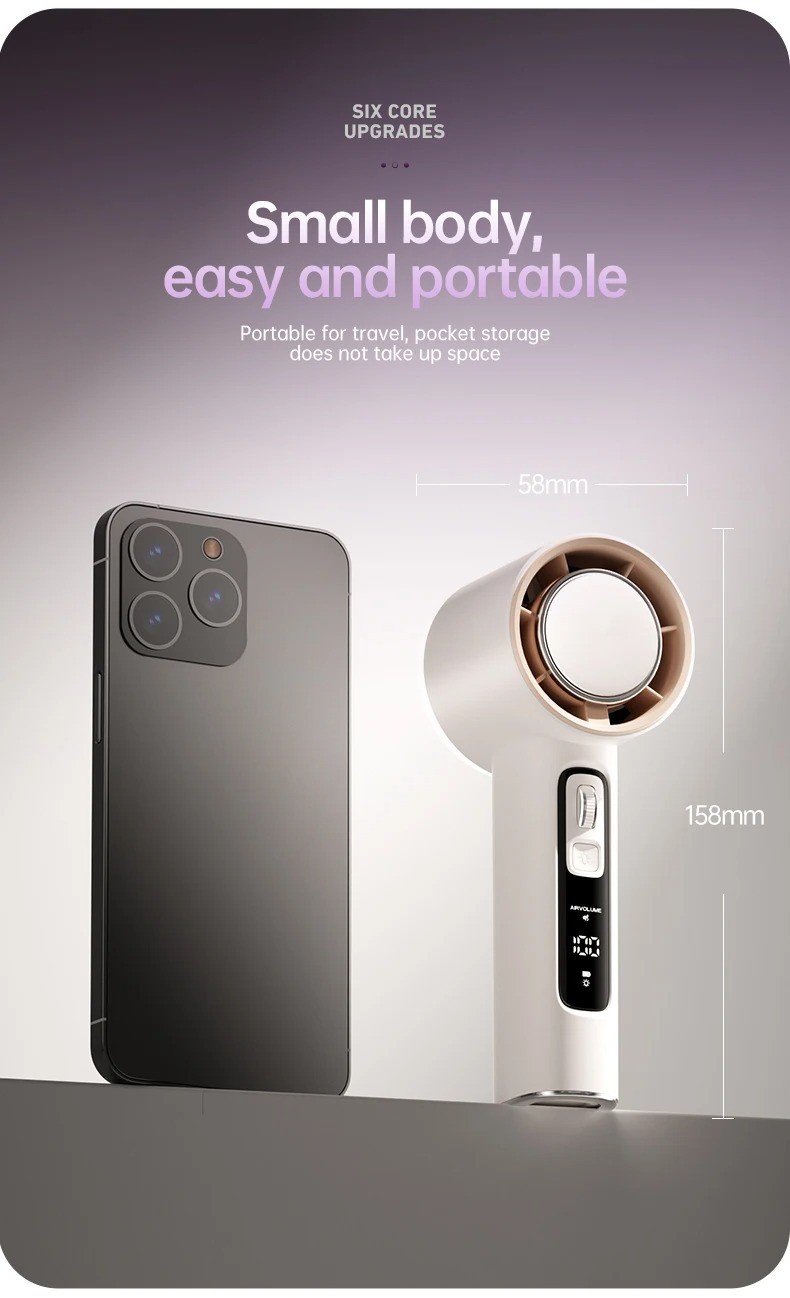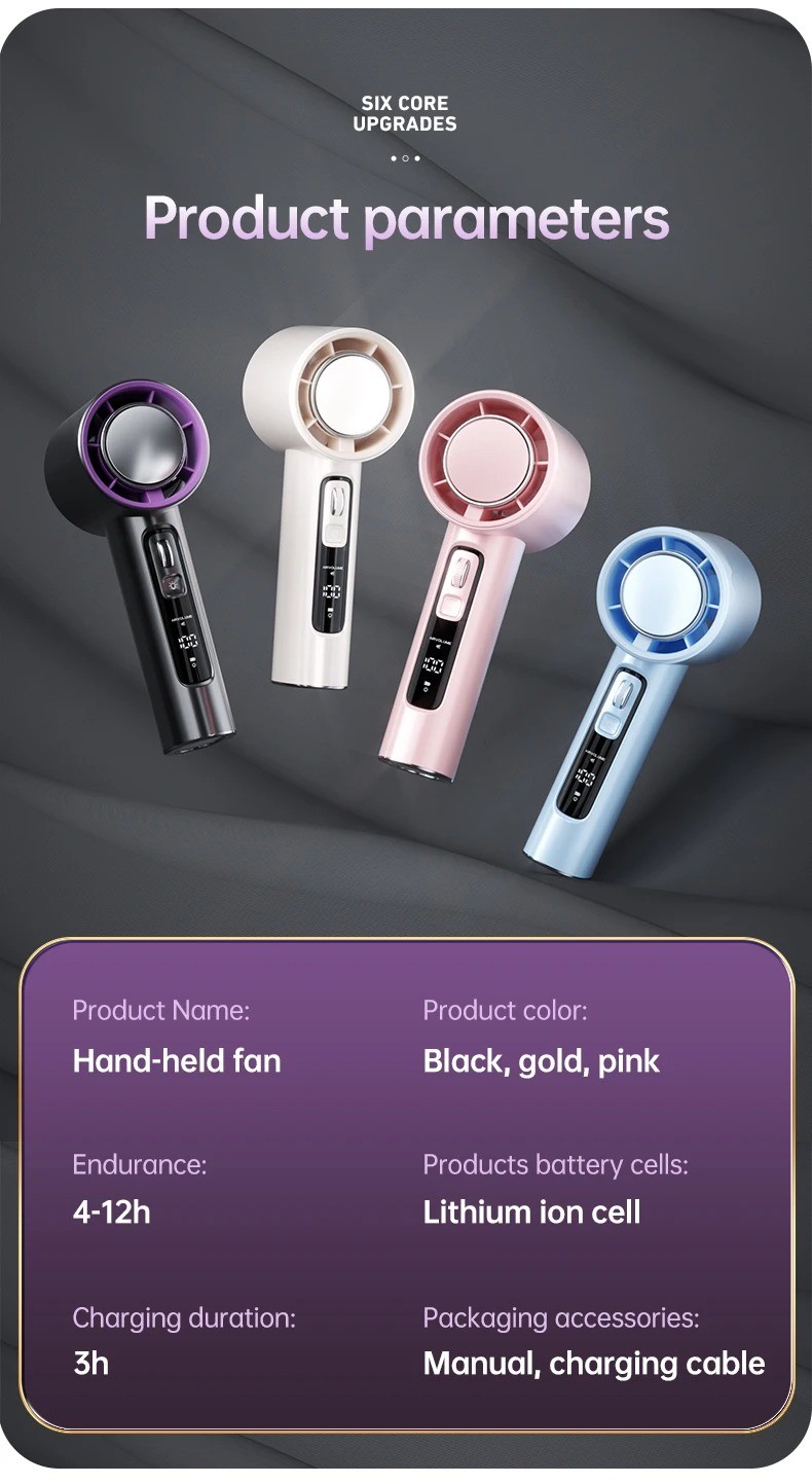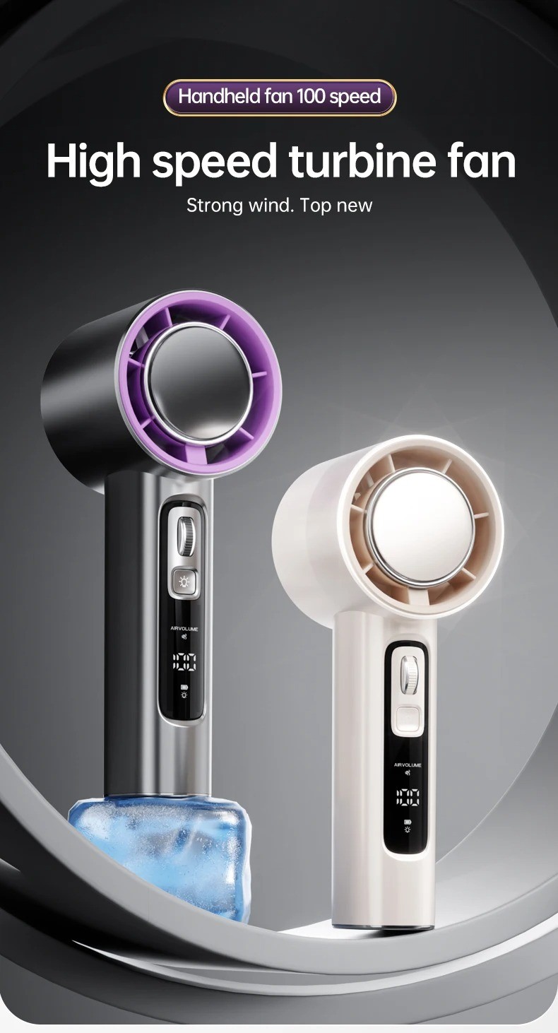 Quạt Cầm Tay Mini Làm Mát Nhanh VOZY 100 Mức Gió Hiển Thị Kỹ Thuật Số Pin 6000mAh Sử Dụng Lên Đến 12H