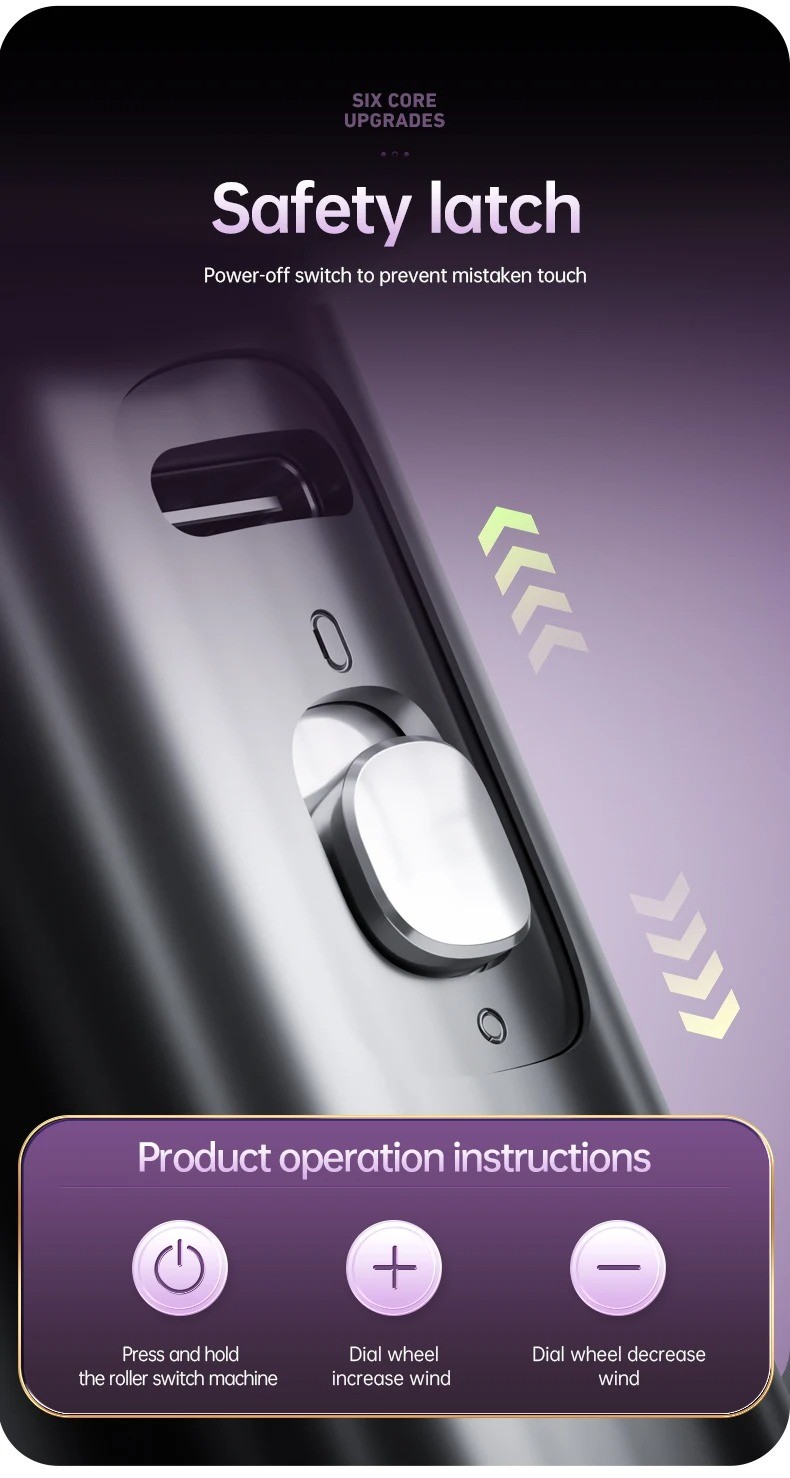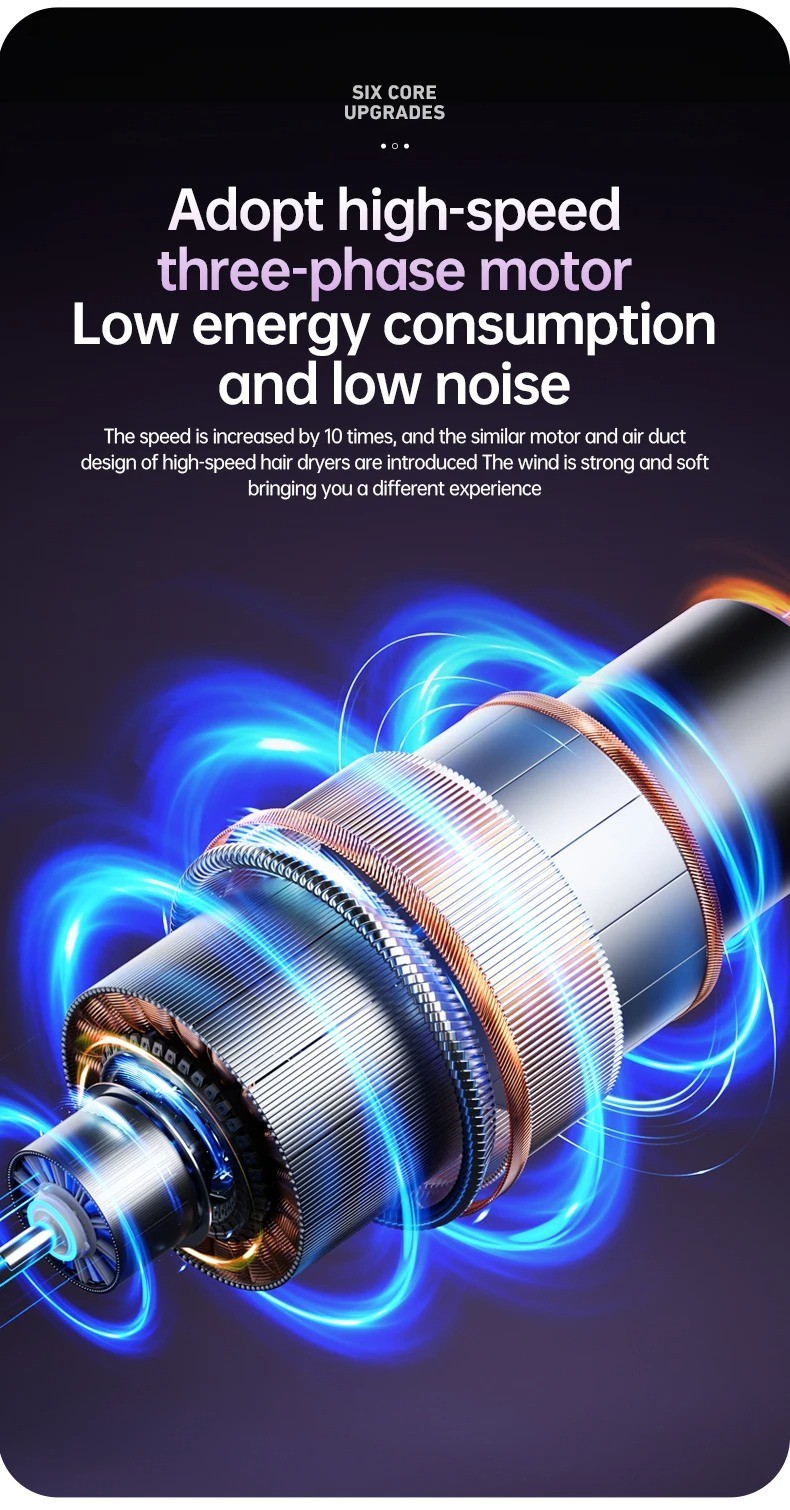 * Sử dụng động cơ tốc độ cao ba pha, tiêu thụ năng lượng thấp, tiếng ồn thấp, tăng tốc độ gấp 10 lần, mang lại sức gió ổn định và mạnh mẽ
