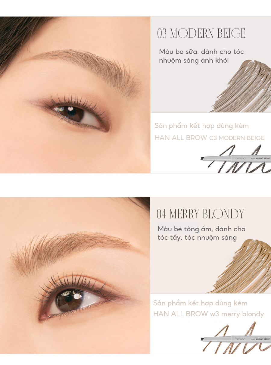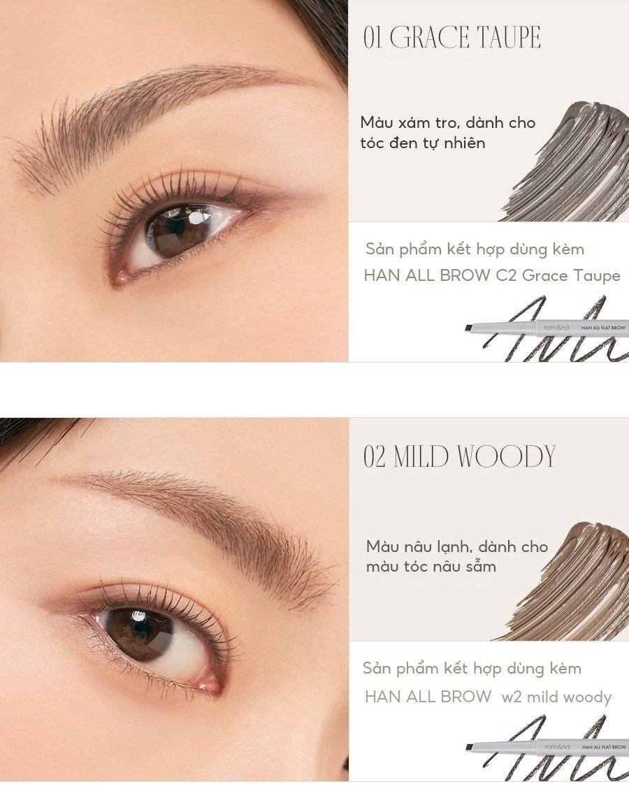 - Mascara dành cho chân mày Romand Han All Brow Cara có những công dụng và đặc trưng như: