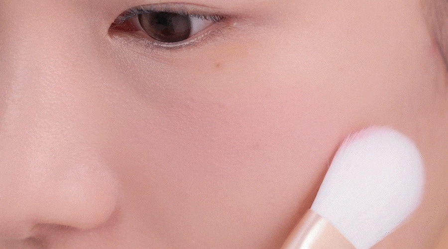 Dùng cọ tán phấn nhẹ nhàng từ xương gò má và đi lên về phía thái dương cho gương mặt thêm hồng hào và thon gọn hơn.