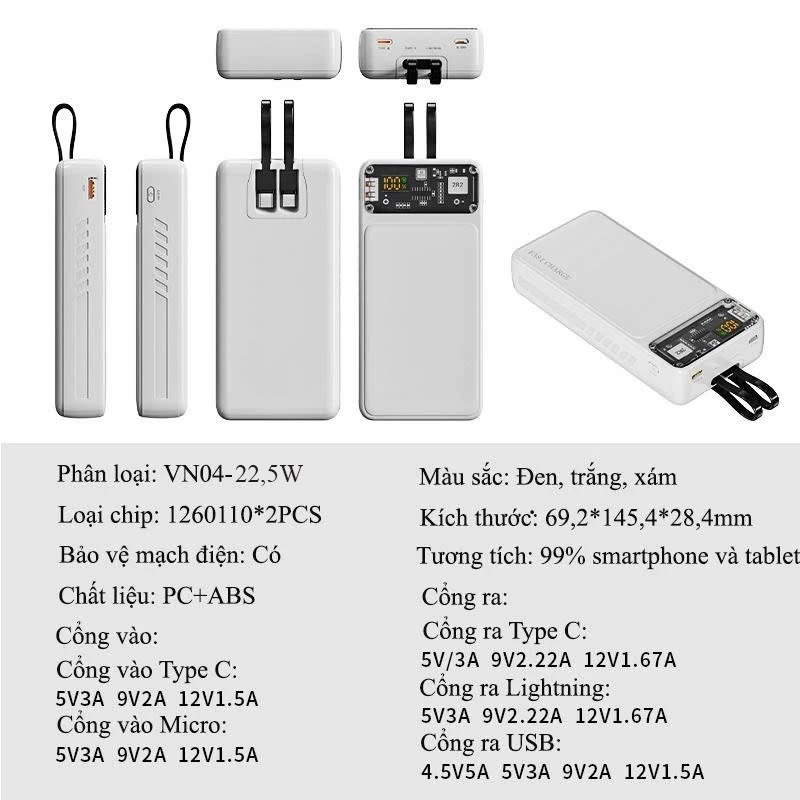 Tính năng pin sạc dự phòng : tích hợp nhiều cổng sạc, sạc nhiều thiết bị