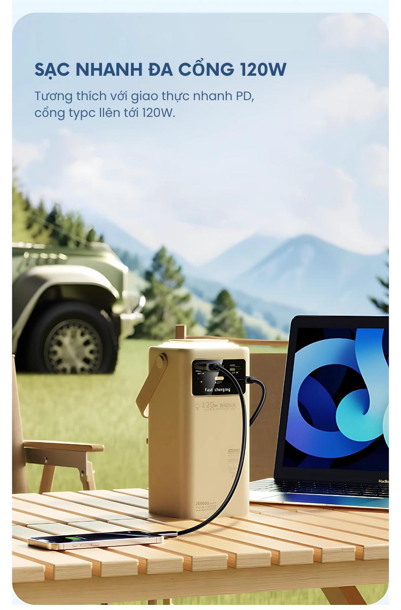 Dung lượng lớn 50000mAh, đầu ra đa giao diện, thiết bị của cả gia đình có thể được sạc cùng nhau, chia sẻ nguồn năng lượng mà không cần phải xếp hàng chờ đợi và dây sạc khác