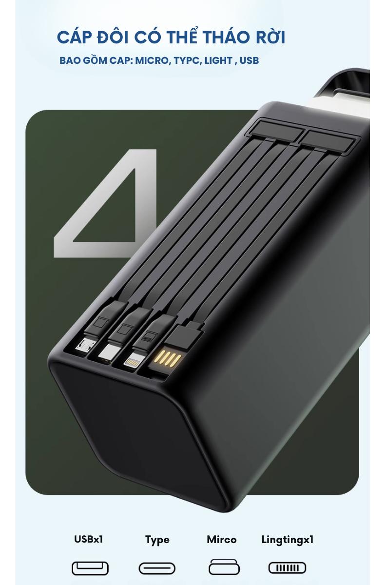 Sạc dự phòng 50000mah HABITEK HB63 sạc nhanh 20w dung lượng pin lớn có sẵn dây sạc cho nhiều thiết bị điện thoại