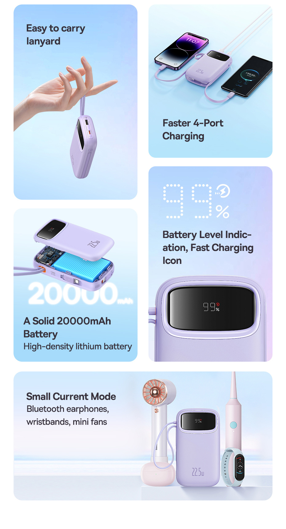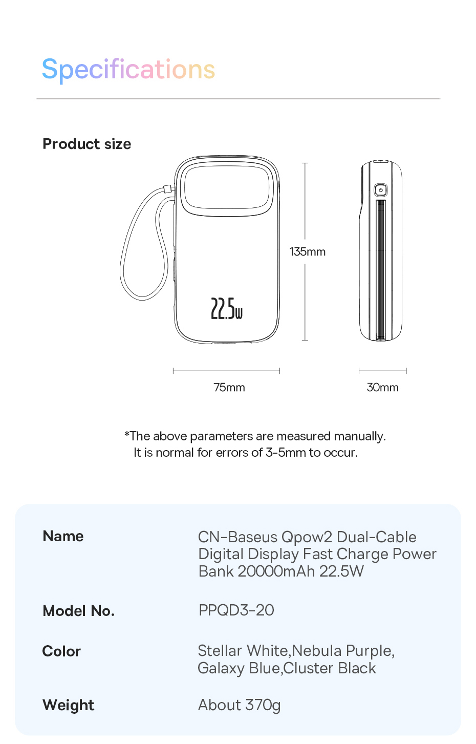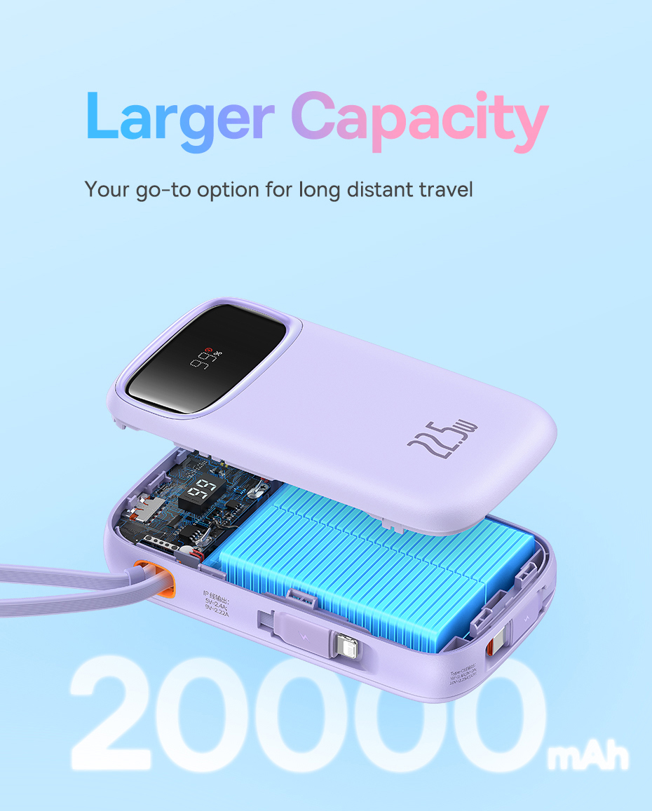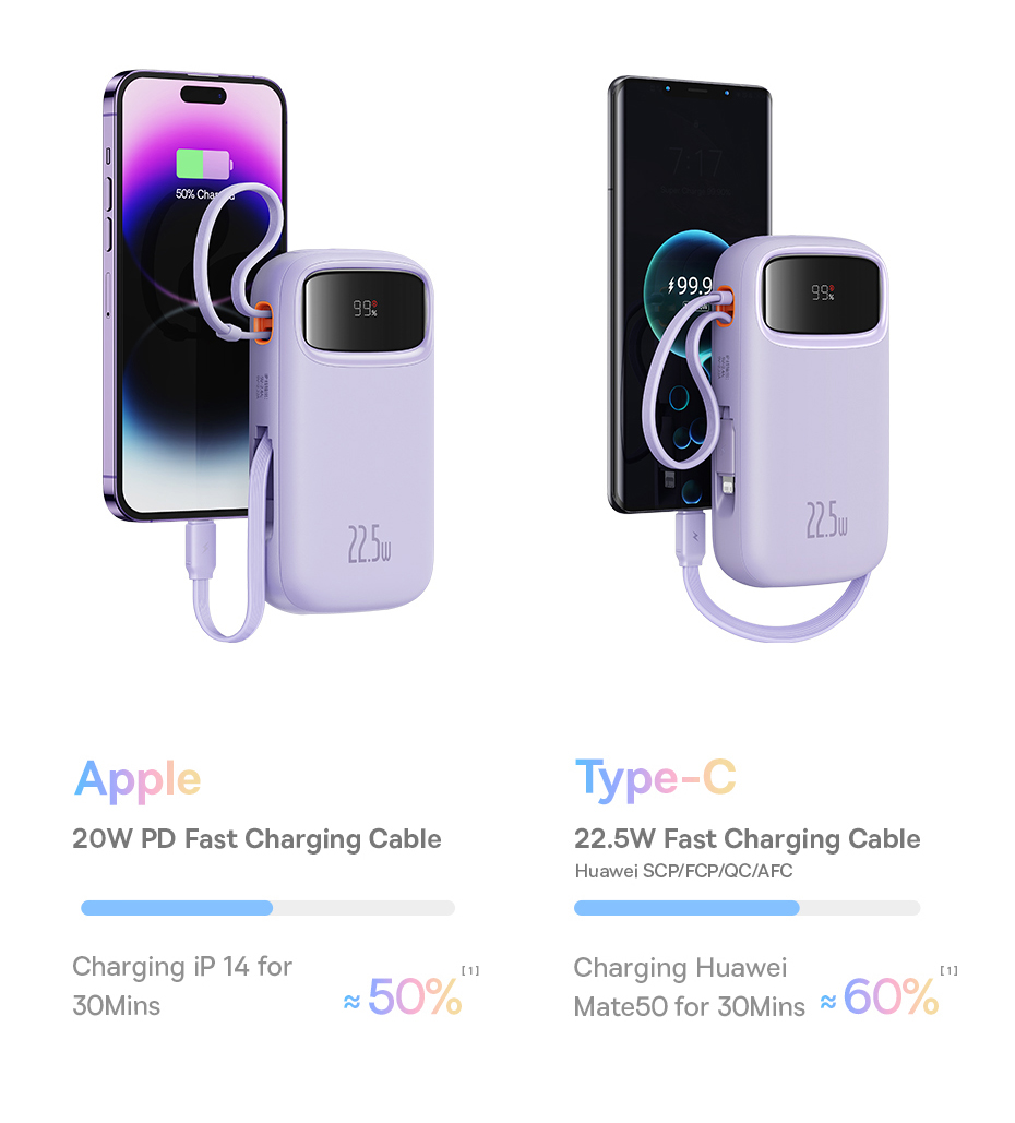 1️⃣Qpow2 22.5W: Tích Hợp Cáp Type-C + L, Kèm Theo Cáp USB Sang Type-C Trong Hộp.