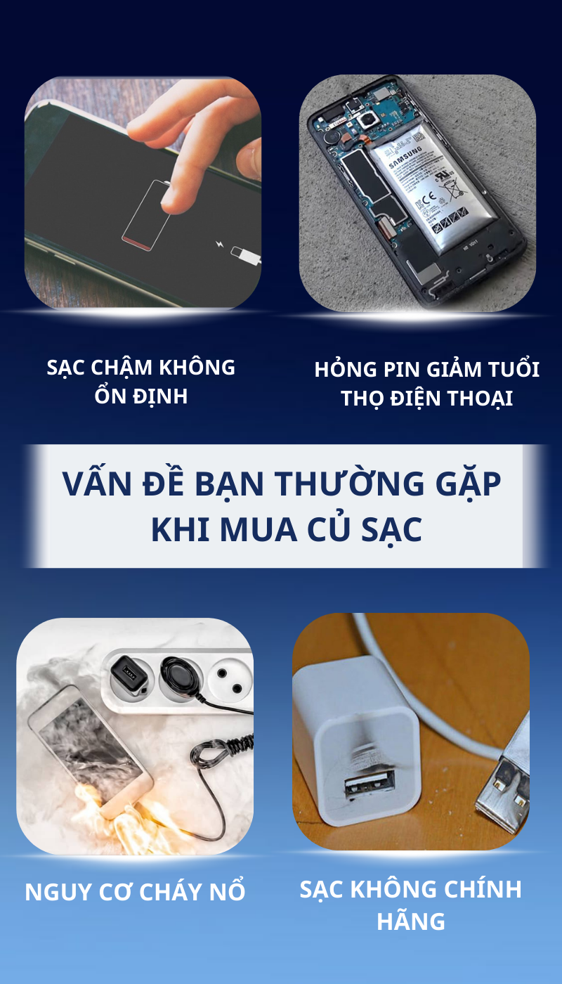 • An Toàn và Bền Bỉ: Tích hợp nhiều cơ chế bảo vệ như bảo vệ quá dòng, quá nhiệt và quá tải, đảm bảo an toàn cho cả củ sạc và thiết bị khi sạc.
