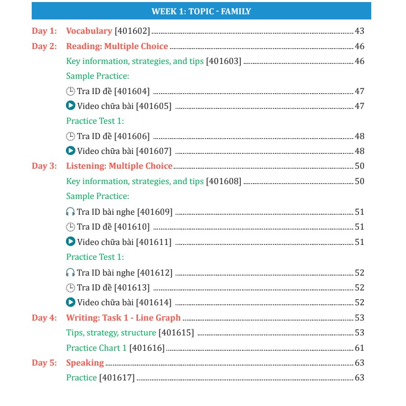 2. Bố cục sách "ielts 5.5+, luyện thi ielts 4 kỹ năng" : Mỗi chủ đề sẽ bao gồm: