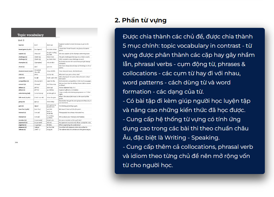 - Tài liệu trong sách dựa theo mức trình độ B1, B2, C1 và C2 chuẩn khung châu Âu