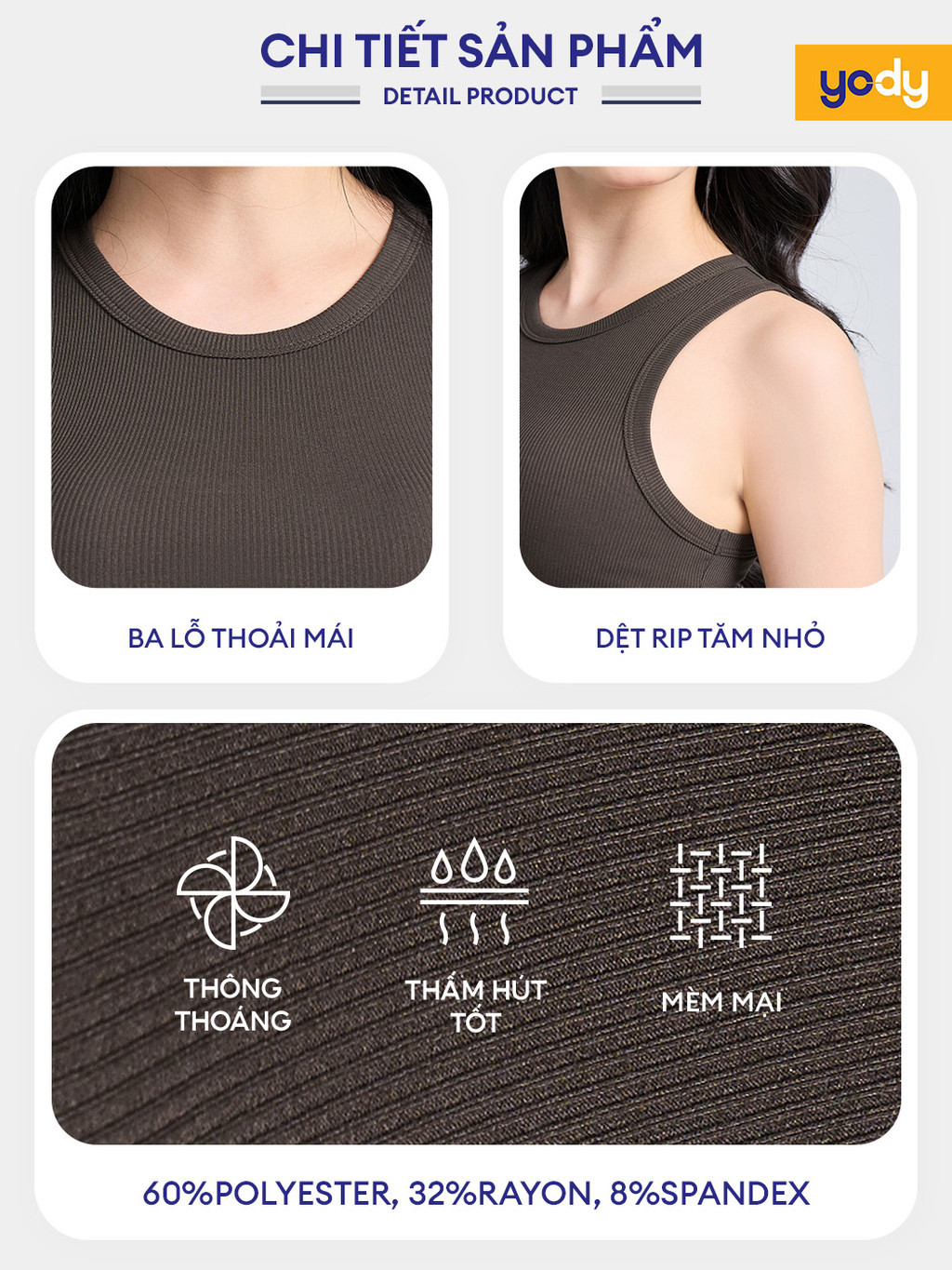 [SALE] Áo ba lỗ nữ YODY dáng croptop, cá tính, năng động, thun ôm co giãn, thoải mái BLN7052