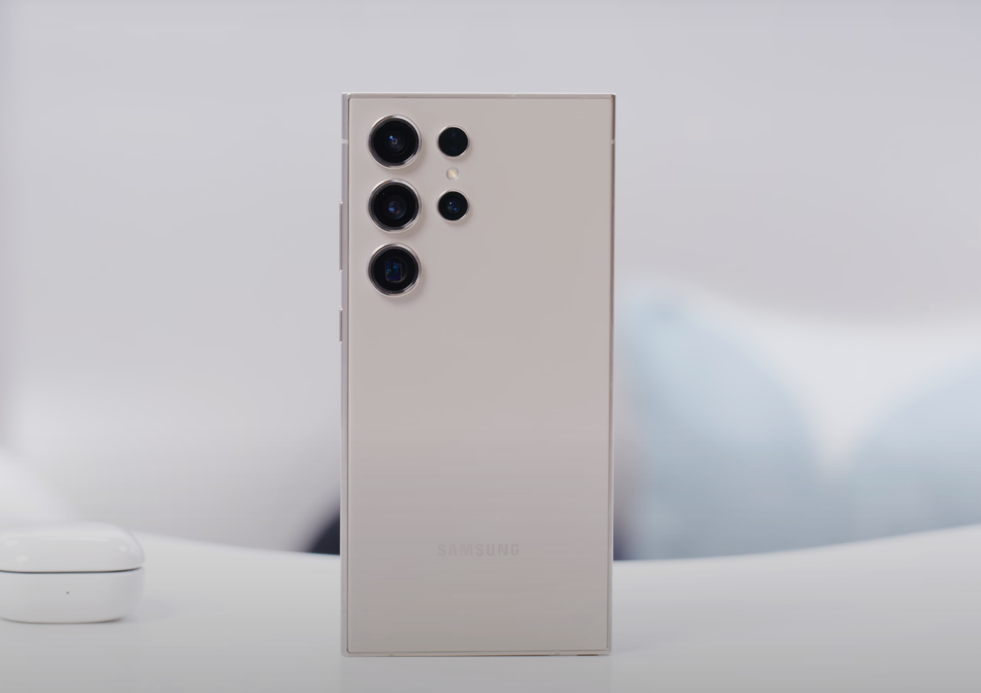Phần hệ thống camera của Galaxy S24 Ultra tiếp tục ấn tượng với cụm 4 cảm biến và 1 đèn LED được sắp xếp một cách độc lập. Đây là một kiểu bố trí camera mà người hâm mộ Samsung đã quá quen thuộc, giúp điện thoại giữ vẻ tối giản trong khi vẫn giữ được sự hiện đại và sang trọng.