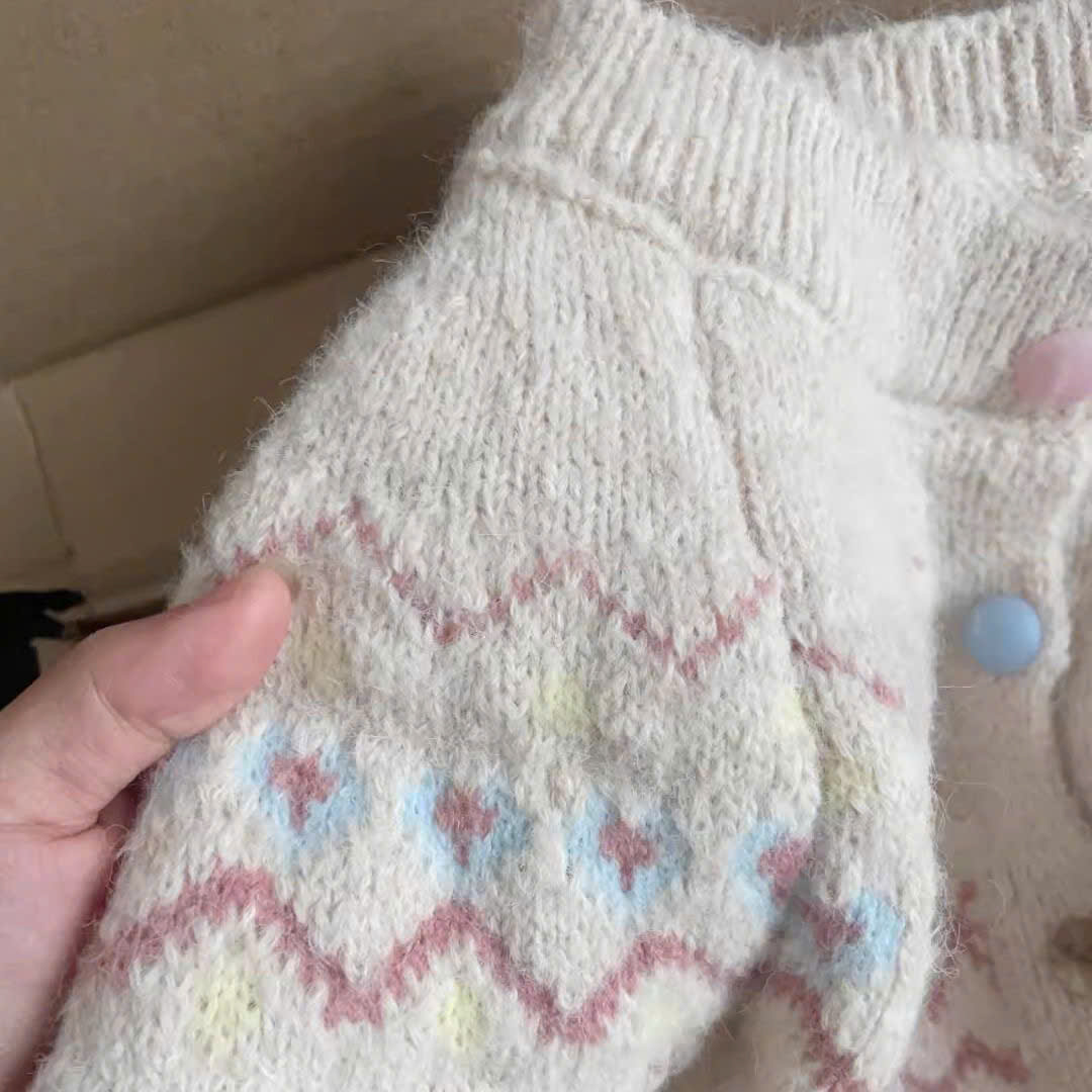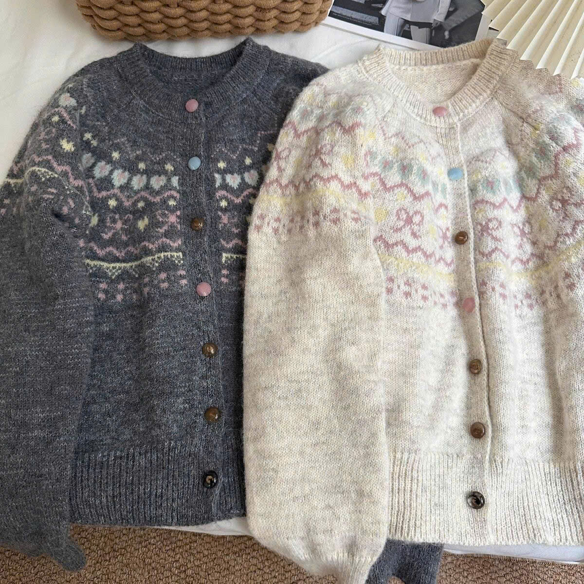 Áo khoác len kiểu xinh xắn cổ tròn cho nữ, áo cardigan len oversize họa tiết dễ thương form rộng