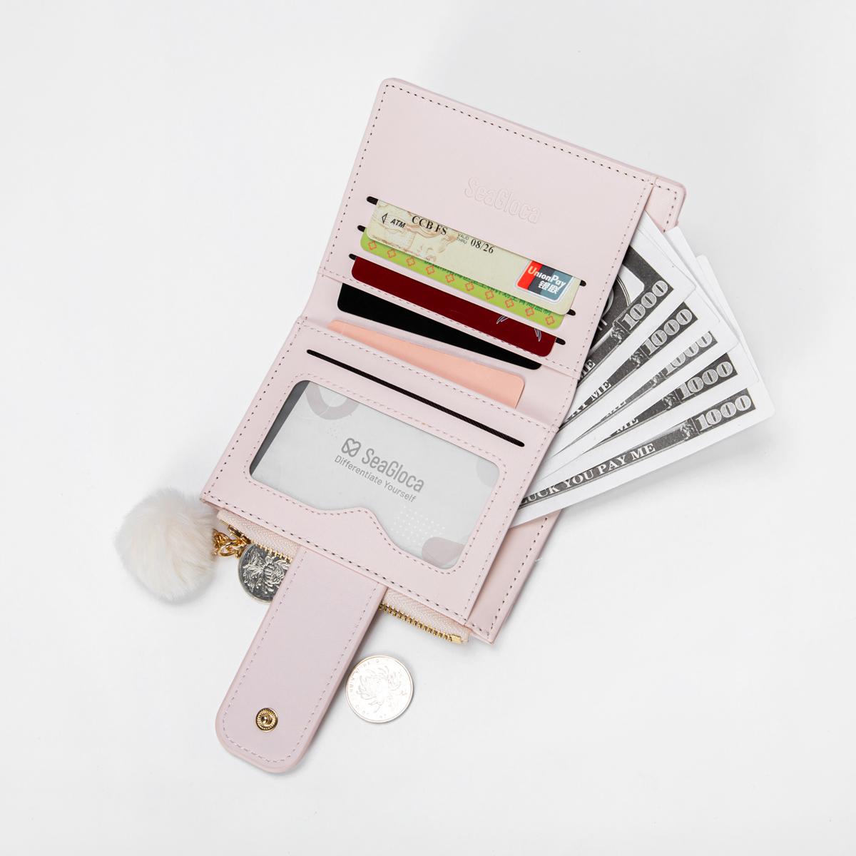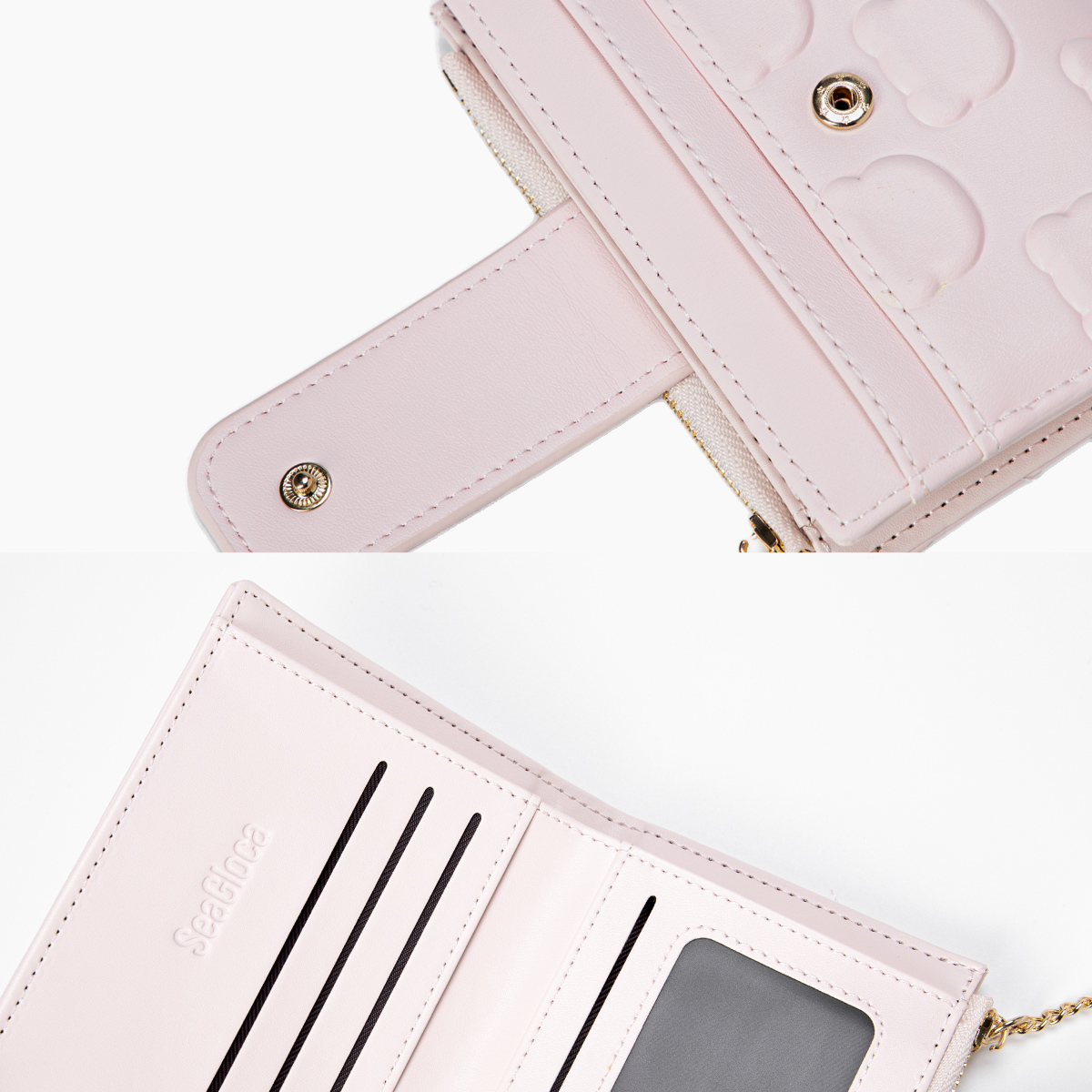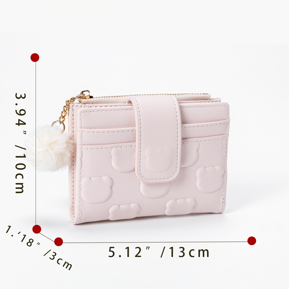 Seagloca Ví da pu ngắn nhẹ in họa tiết gấu thời trang hàn quốc cho nữ 4557