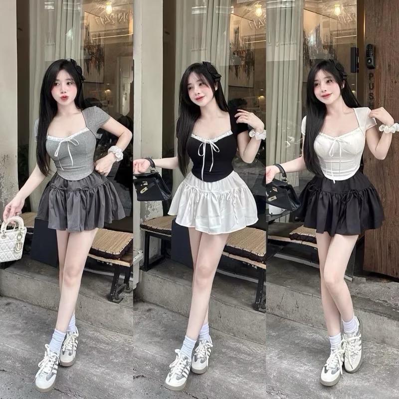 Sét Áo Kiểu Ren Nơ + Mix chân váy bí có lót quần bên trong ( Bigsize :50-90kg ) Nữ Women