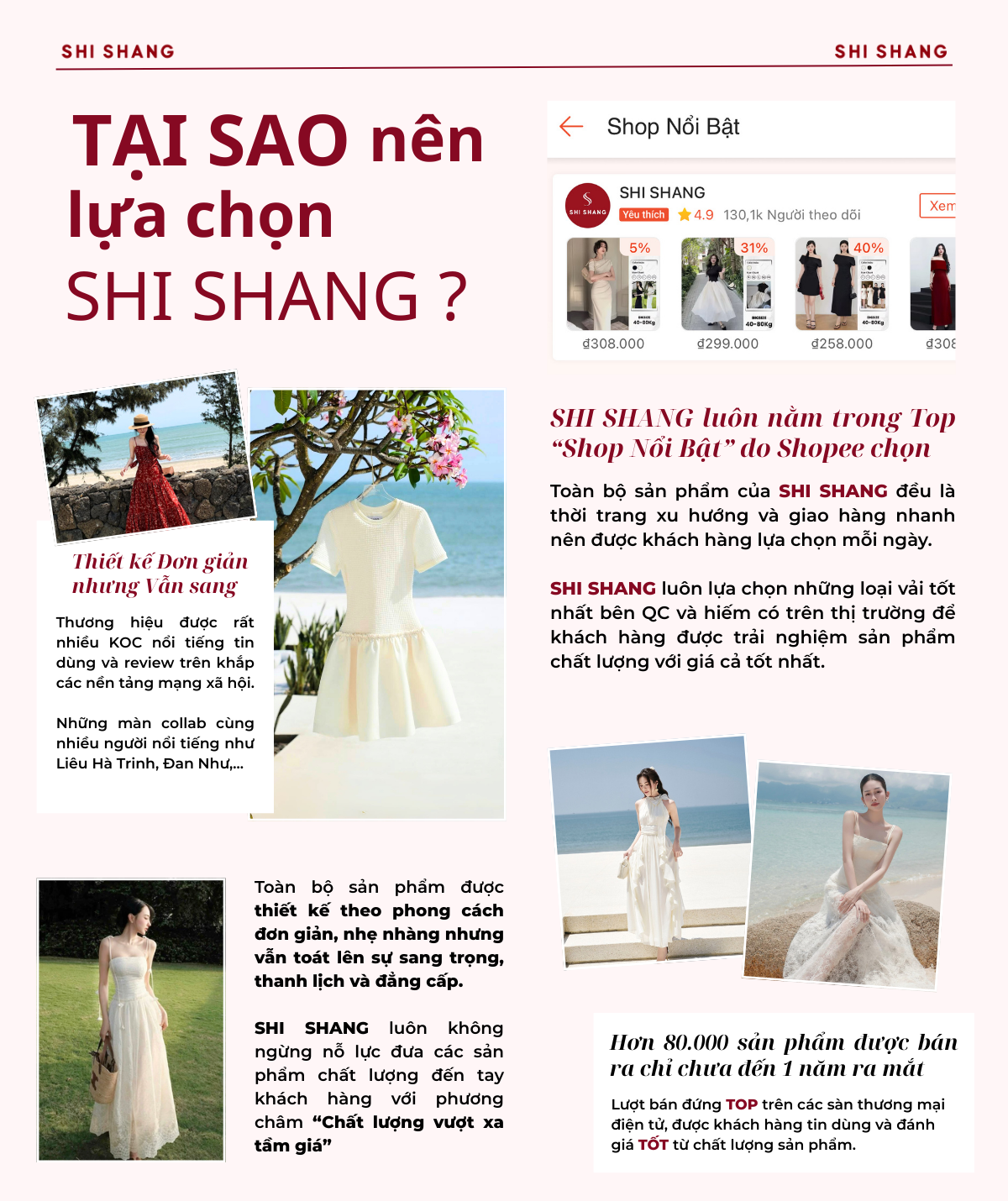 Shi Shang là thương hiệu thời trang chuyên cung cấp các thiết kế cao cấp với phong cách tinh tế, nhẹ nhàng, thanh lịch và hiện đại. Từng sản phẩm của Shi Shang được chăm chút tỉ mỉ từ chất liệu đến kiểu dáng, mang đến vẻ đẹp tự tin và sang trọng cho phái đẹp. Với Shi Shang, thời trang không chỉ là trang phục, mà còn là ngôn ngữ thể hiện cá tính và phong cách riêng của bạn.