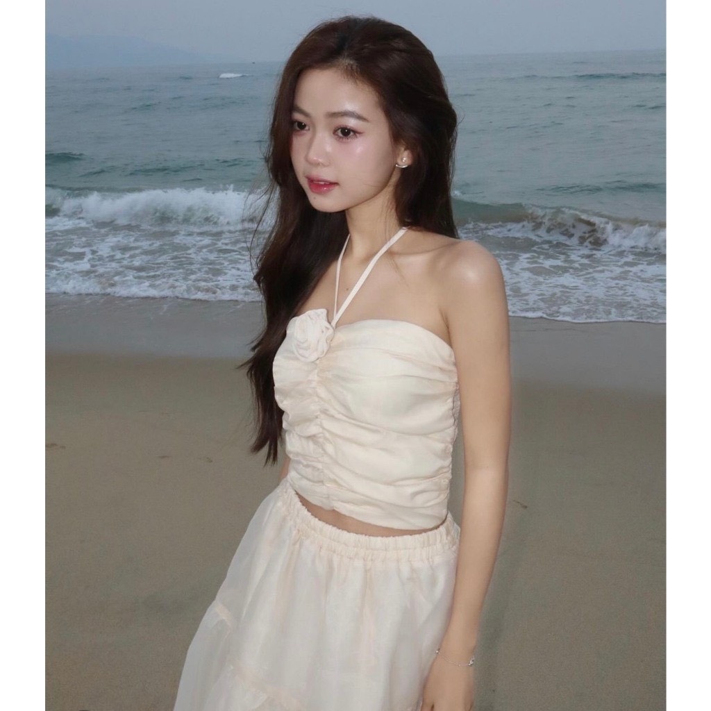 + Tên sản phẩm : Sét váy maxi áo cúp nguc dây yếm gắn hoa kèm chân váy xoè dáng dài 2 lớp xinh xẻo B404 PANOSI