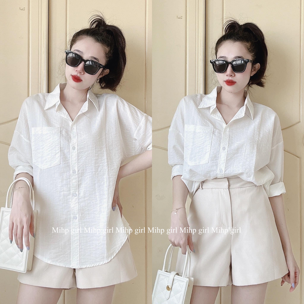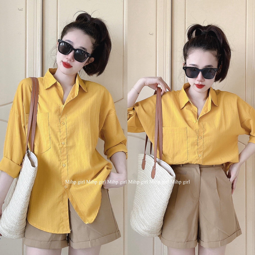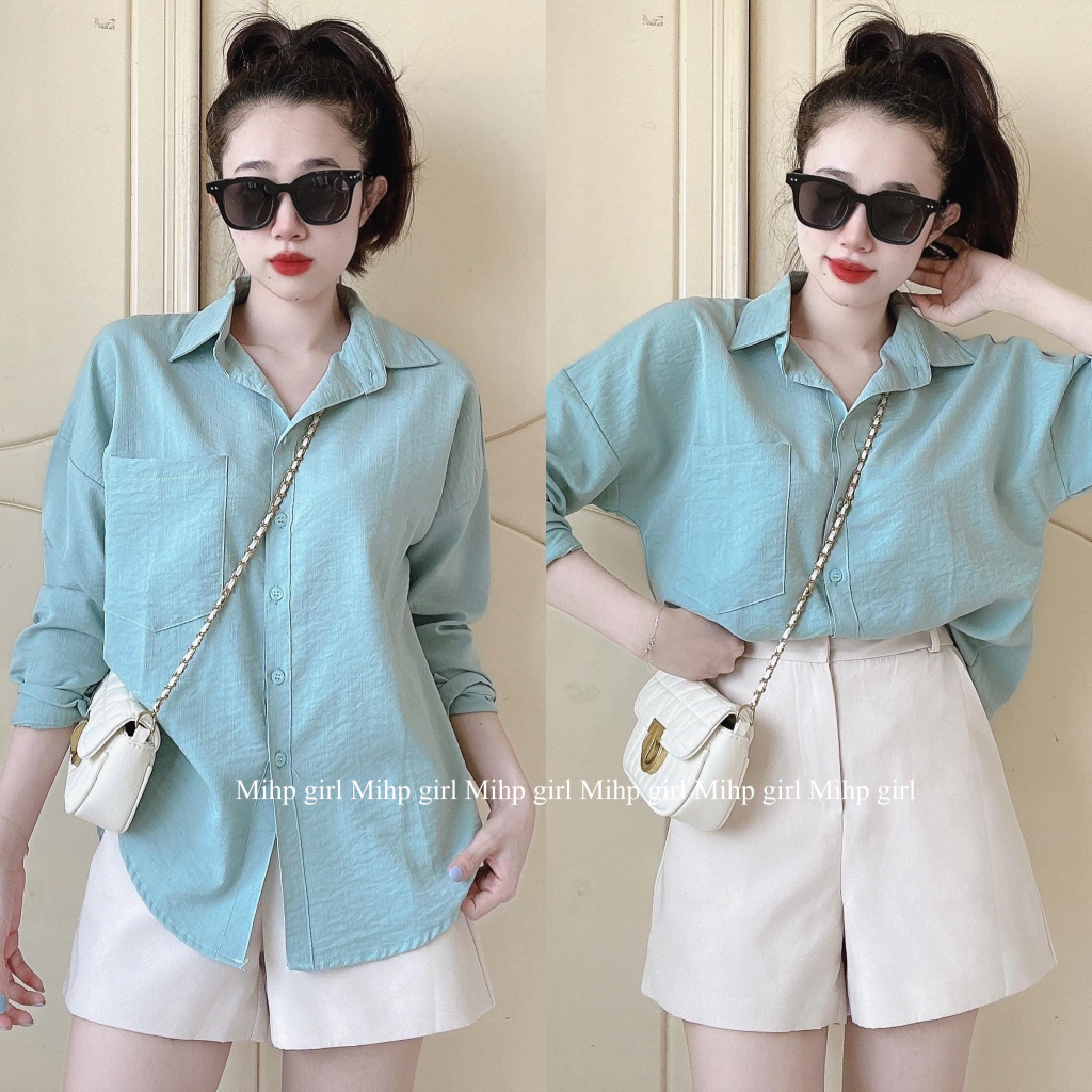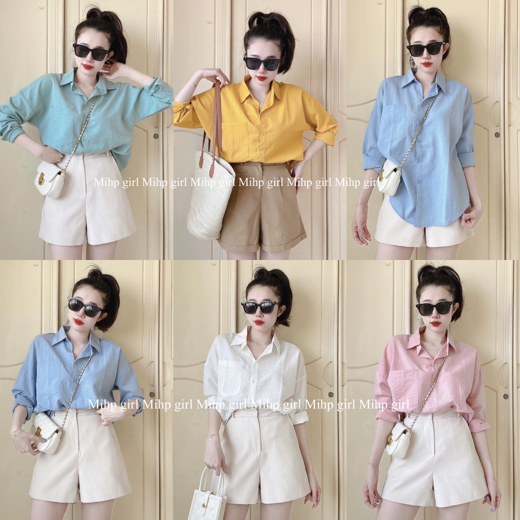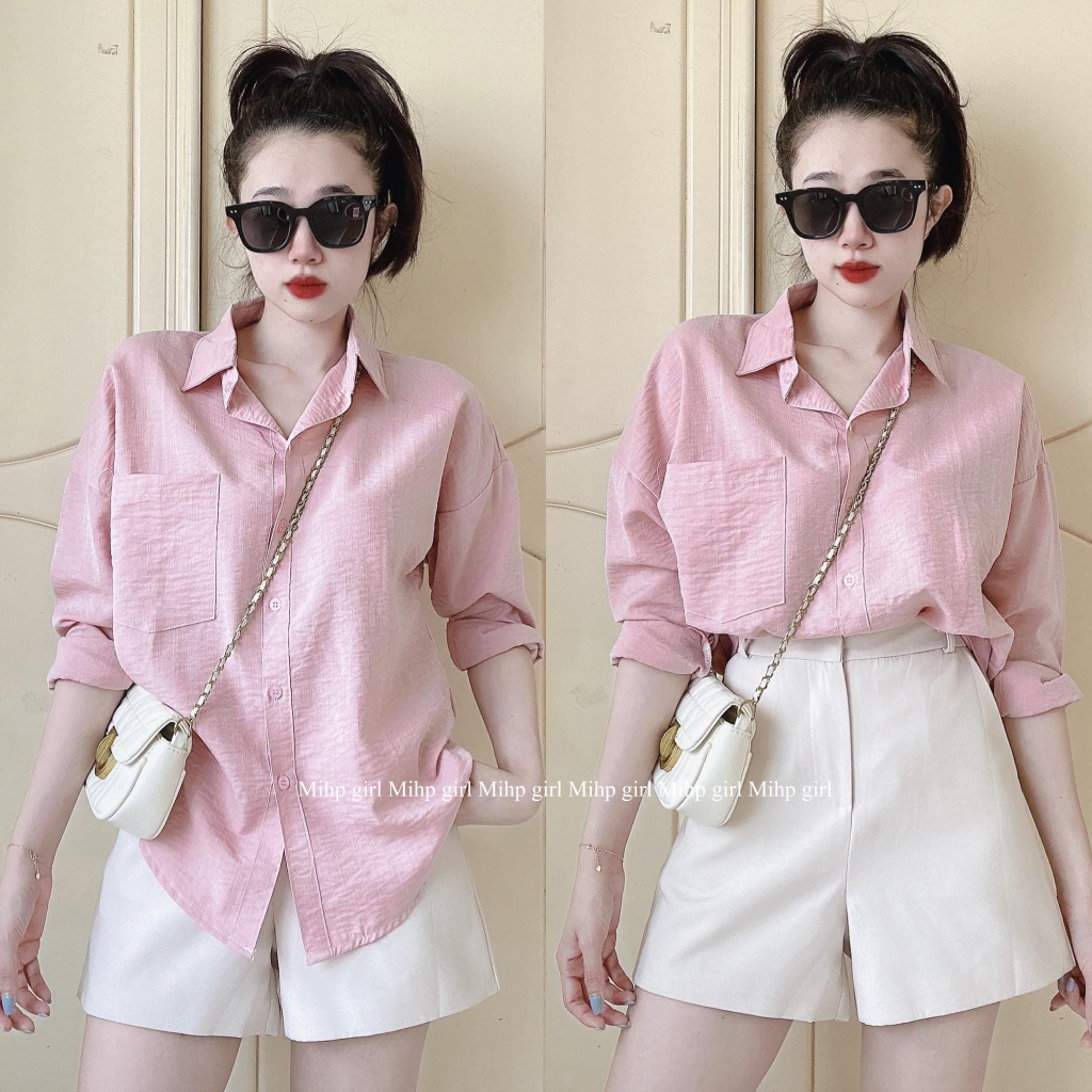 Sơ mi nữ basic nhiều màu, Áo sơ mi trắng dài tay form rộng thích hợp mặc đi chơi, đi du lịch dễ phối đồ