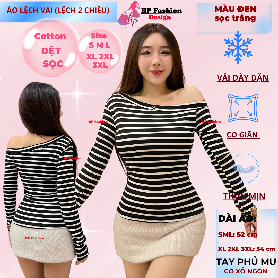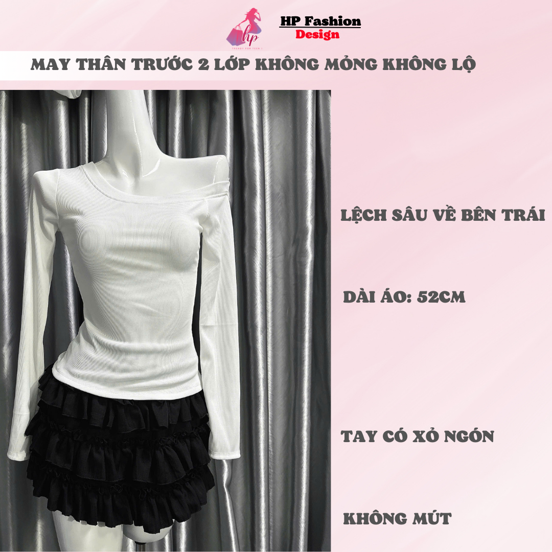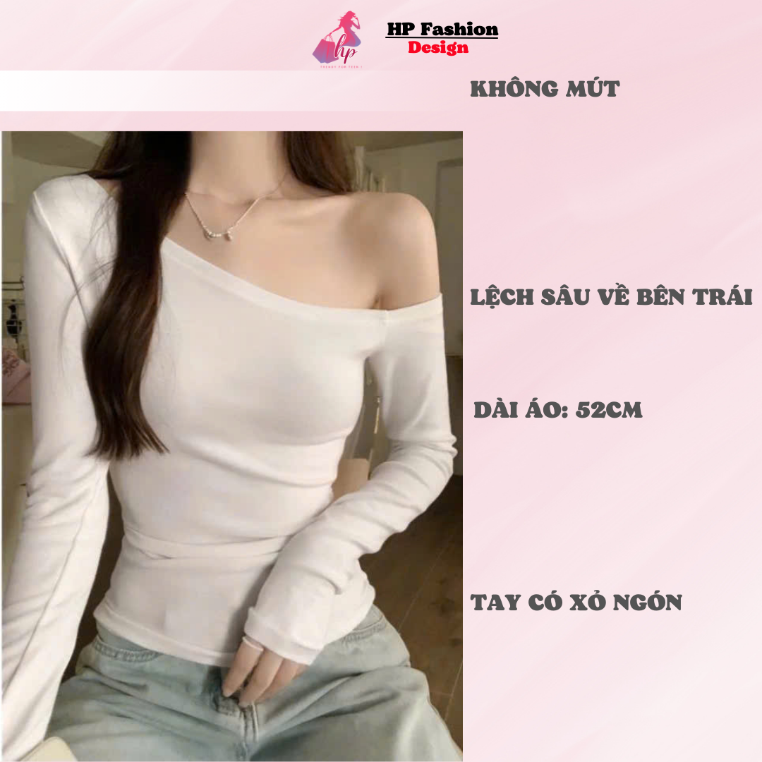 Áo thun lệch trễ hở vai body dài tay, áo kiểu nữ màu đen trắng đỏ co giãn mùa hè mùa đông noel tết tôn dáng HP5