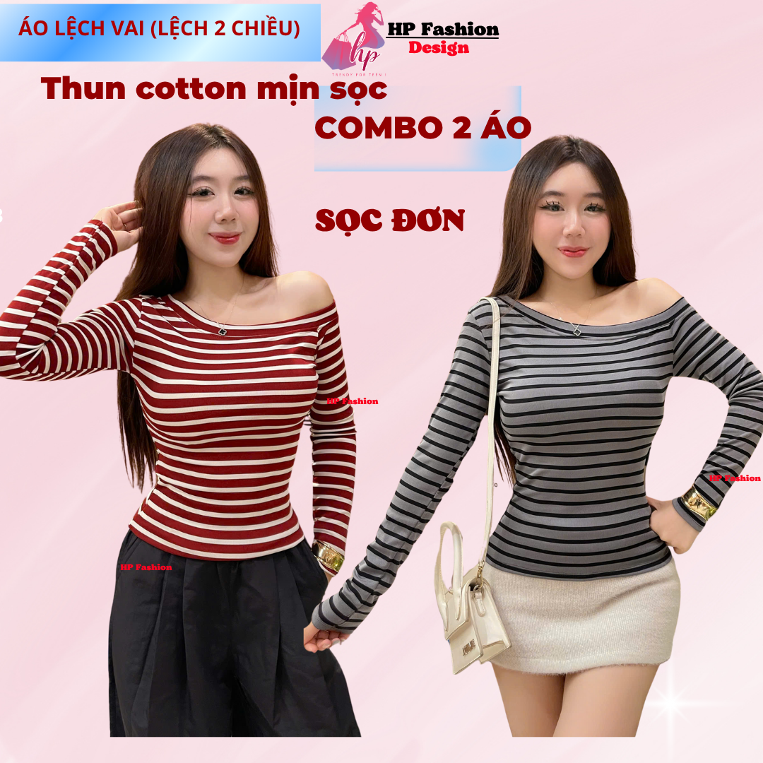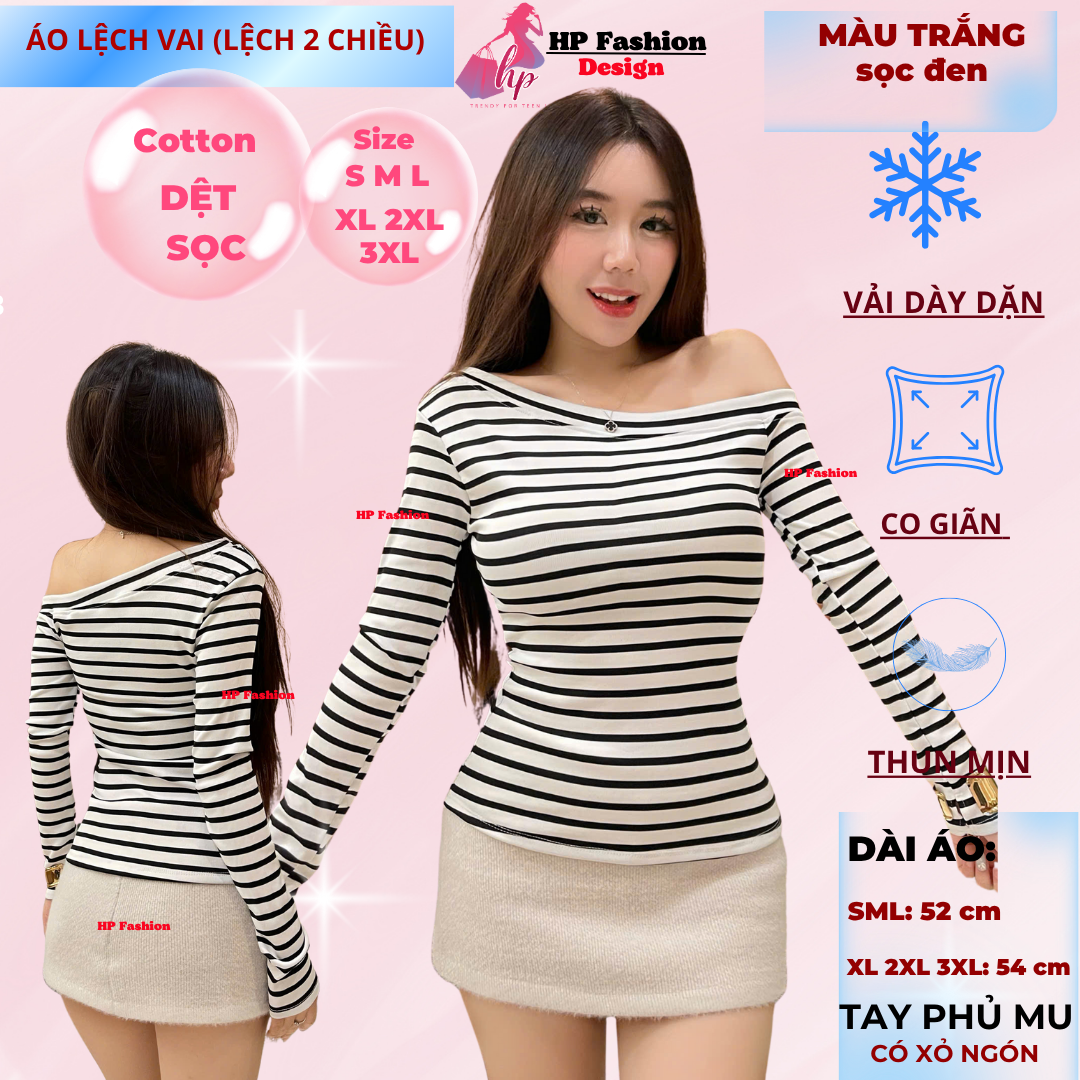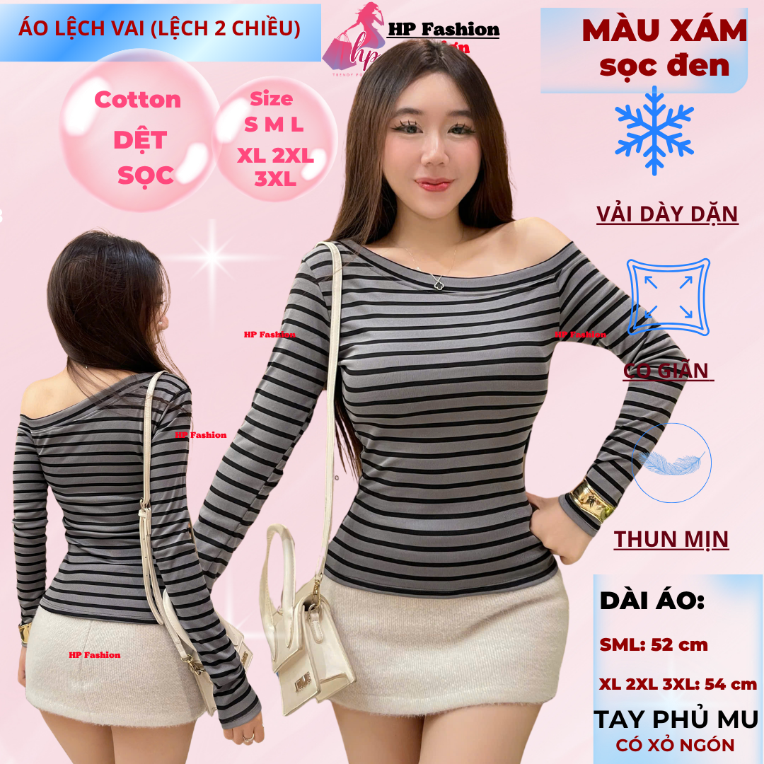 Áo thun lệch trễ hở vai body dài tay, áo kiểu nữ màu đen trắng đỏ co giãn mùa hè mùa đông noel tết tôn dáng HP5
