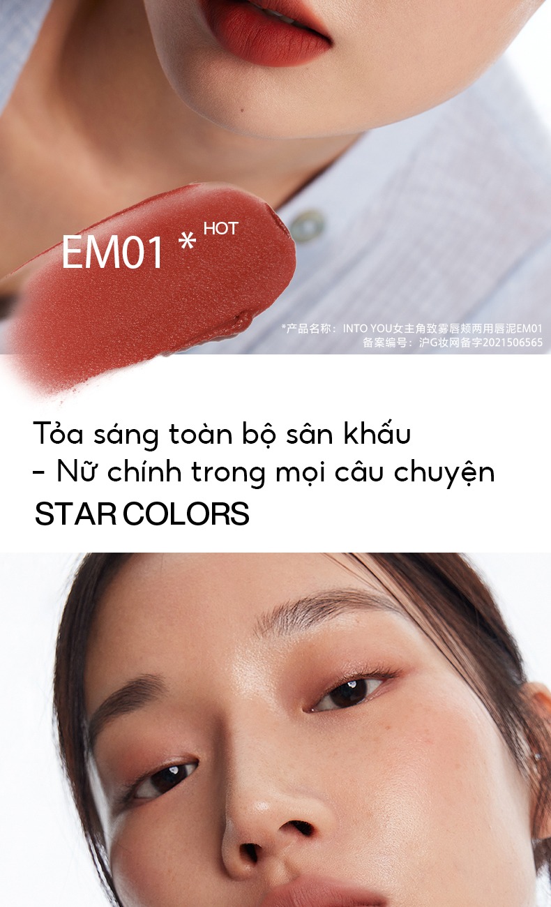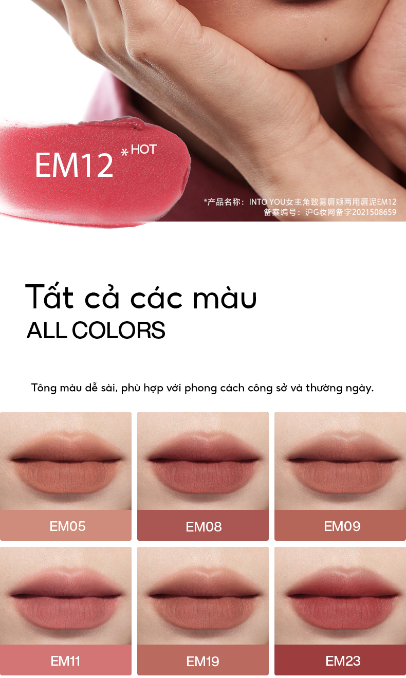 Son Bùn INTO YOU Lì Mịn Độ Che Phủ Tốt Lấp Đầy Rãnh Môi Dễ Tán Hợp Da Trắng Makeup Style Trung EM01 2g