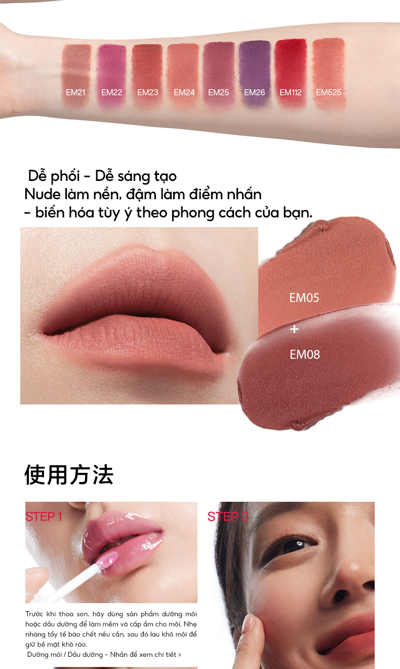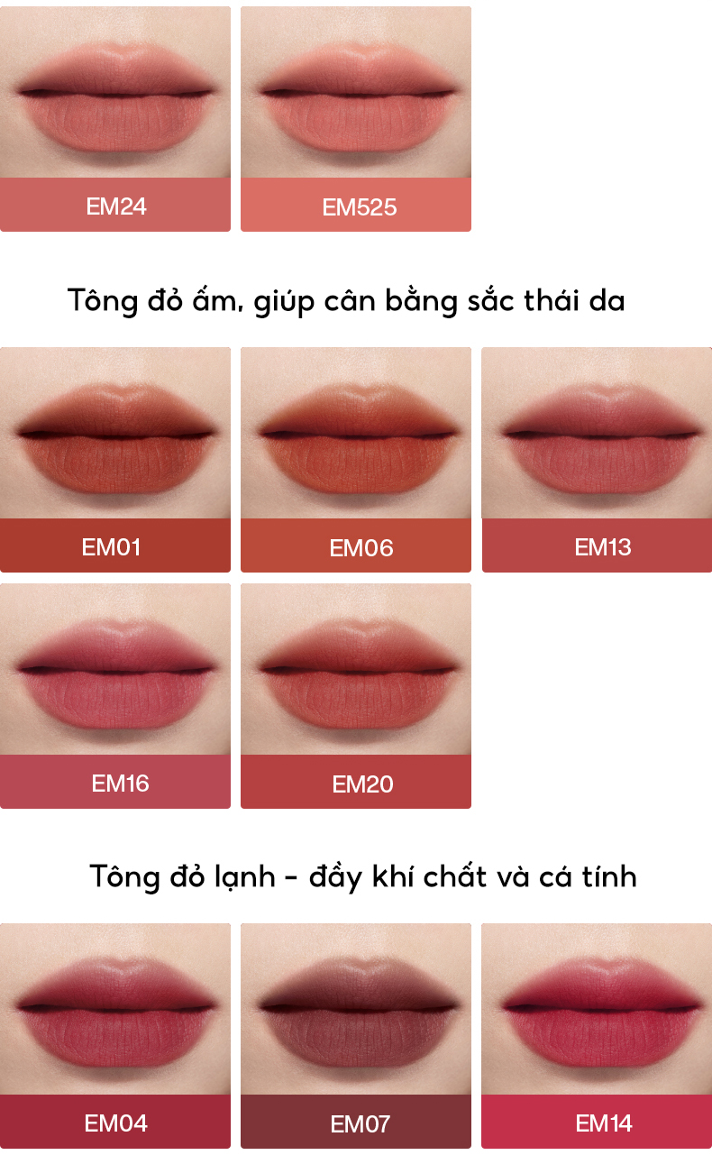 EM05: Tông cam đất ấm, dễ dùng hàng ngày, phù hợp nhiều tông da.