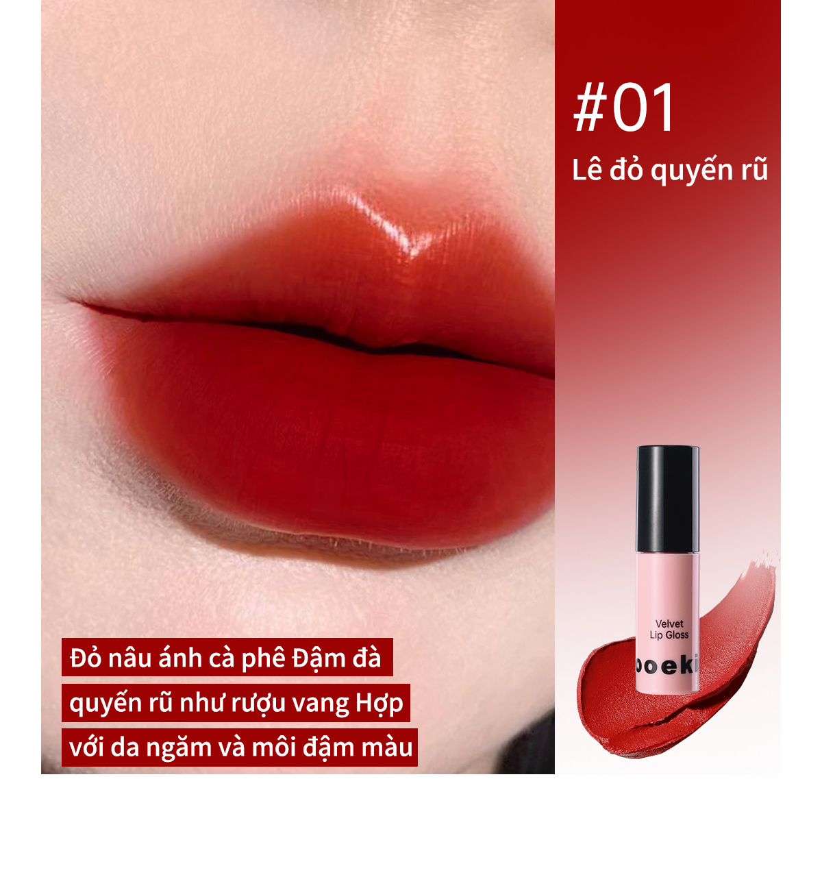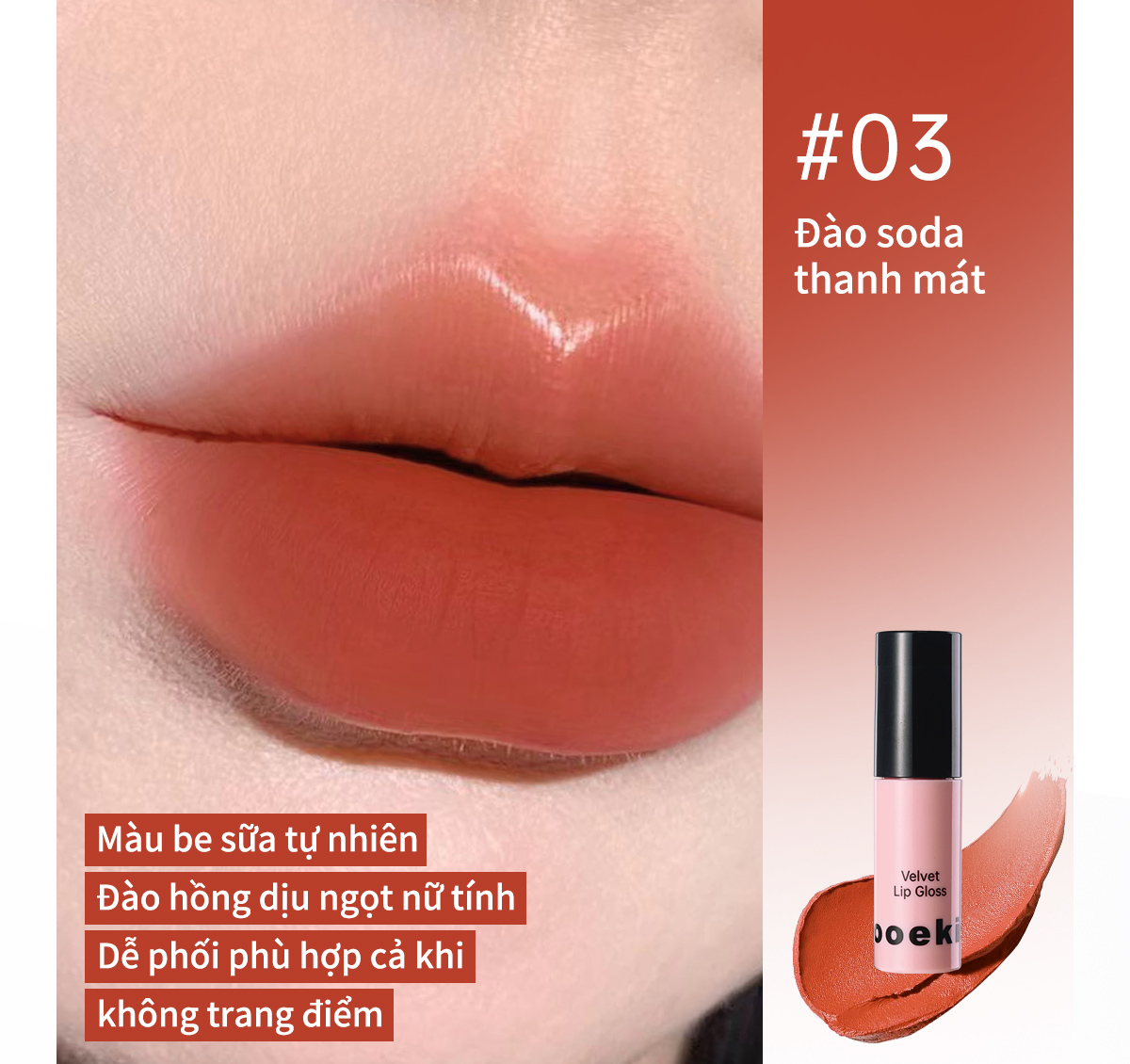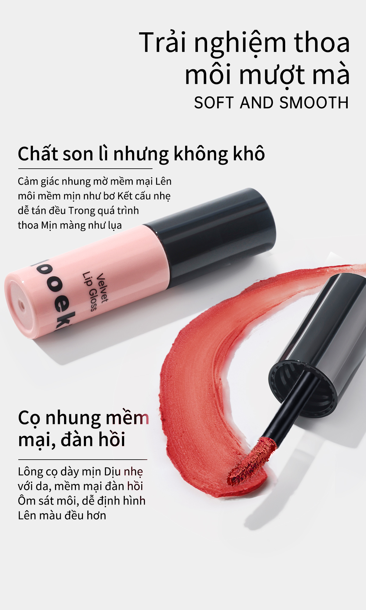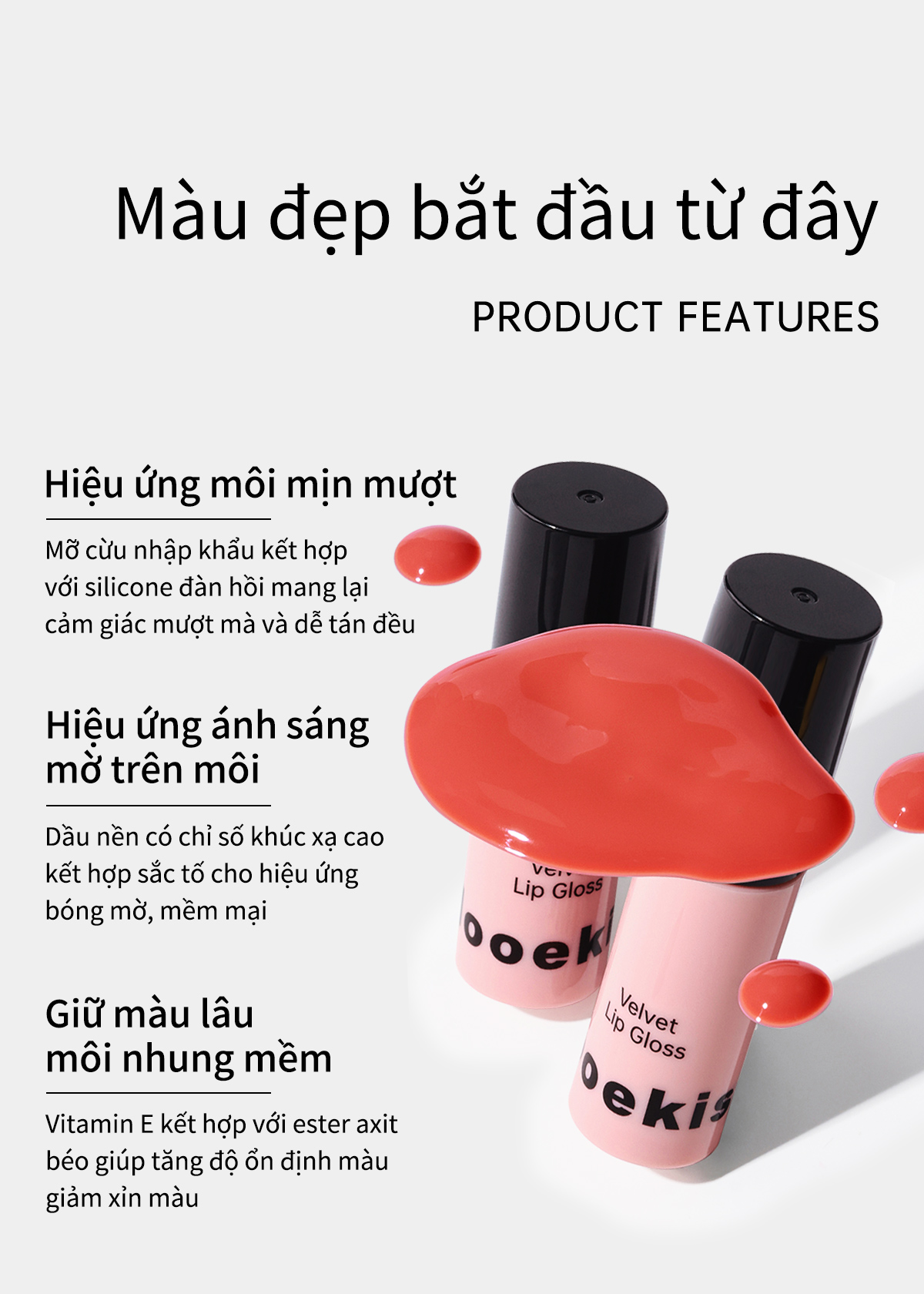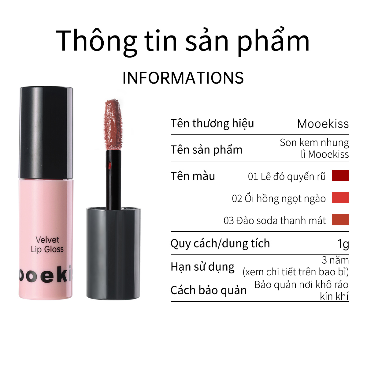 Son bóng dưỡng ẩm Mooekiss làm mờ nếp nhăn môi và lâu trôi, 1g