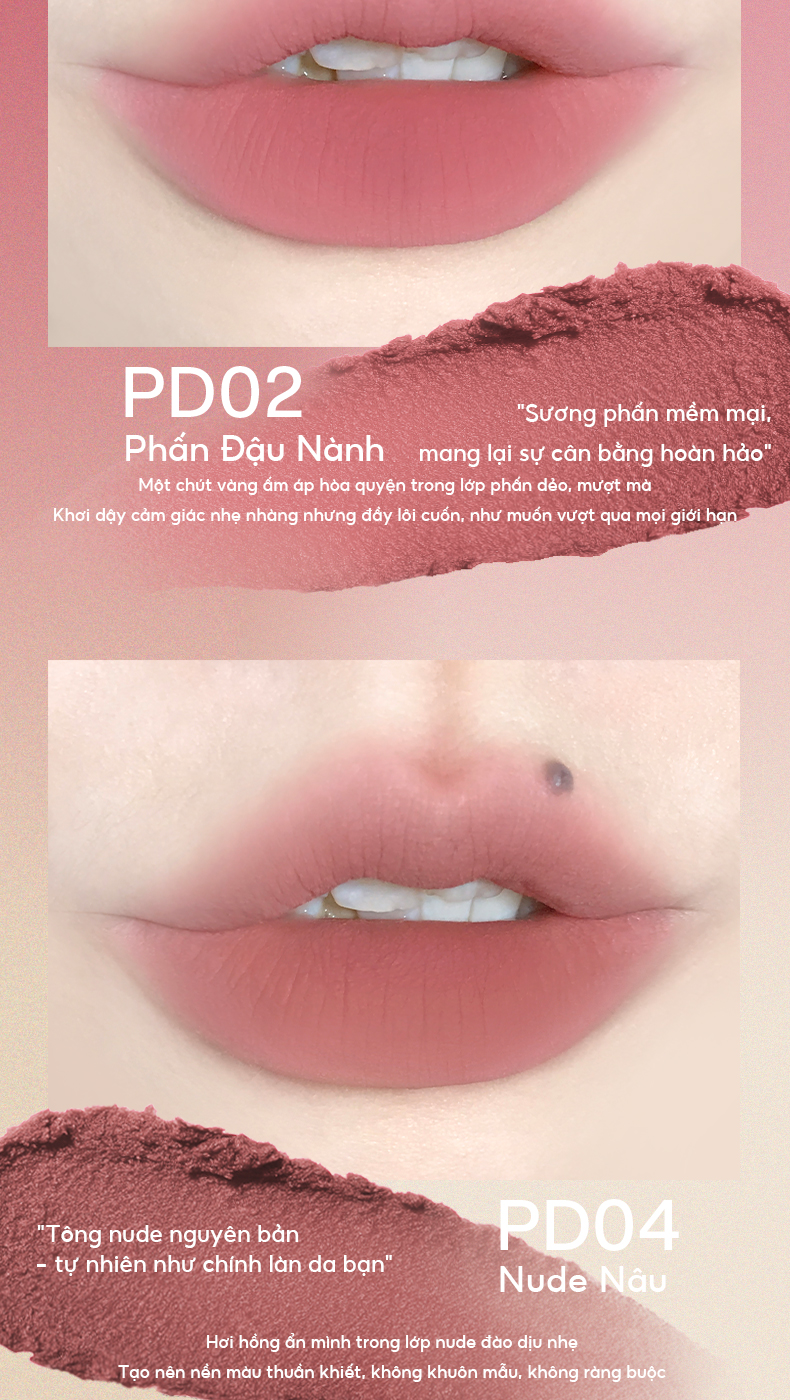 Phù hợp cho mọi loại da môi: Che phủ rãnh môi tốt, không làm khô hay lộ vân môi.