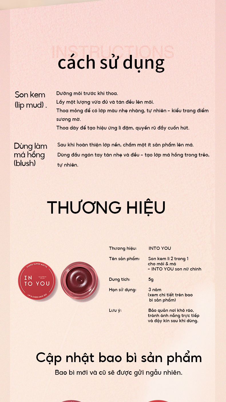 Tên sản phẩm: Son Hũ INTO YOU Mịn Chất Son Lì Không Làm Khô Môi Dễ Tán Tặng Kèm Cọ Tán Dùng Cho Môi Và Má PD01 5g