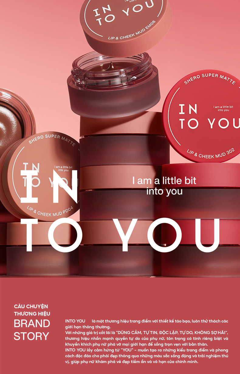 INTO YOU chính thức ra mắt vào cuối năm 2019, là một thương hiệu mỹ phẩm có trụ sở tại Thượng Hải. Sáng tạo dòng sản phẩm Lip Mud – son kem bùn “xu thế mới” với độ phủ màu cao, bám lâu mà vẫn mượt môi, có thể dùng cho môi – má – mắt. Sản phẩm 100% cruelty‑free, không chứa paraben, phù hợp với xu hướng clean beauty và người dùng vegan