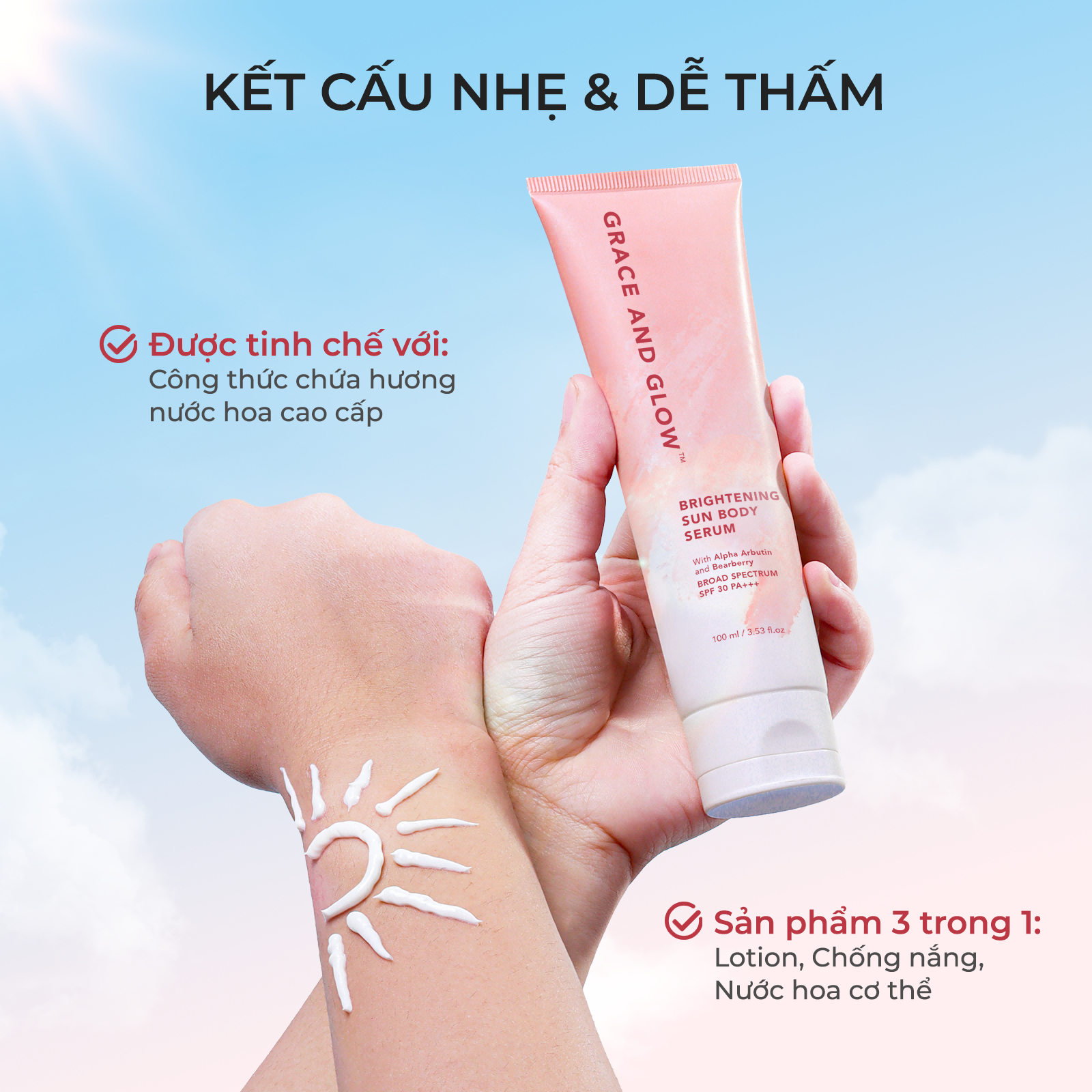 Sữa dưỡng thể kem chống nắng body SPF 30+ PA+++ Grace and Glow làm trắng da Black Opium Sun Body Serum 100ml nâng tone