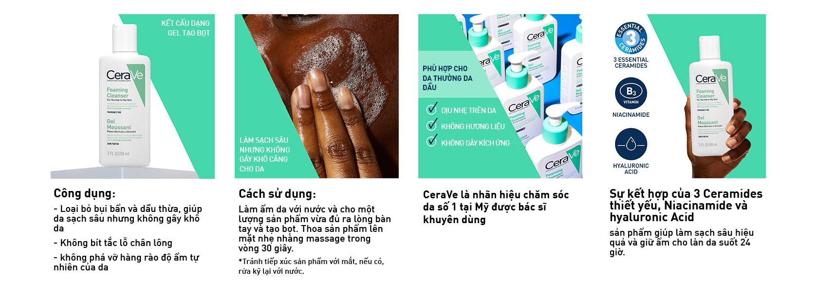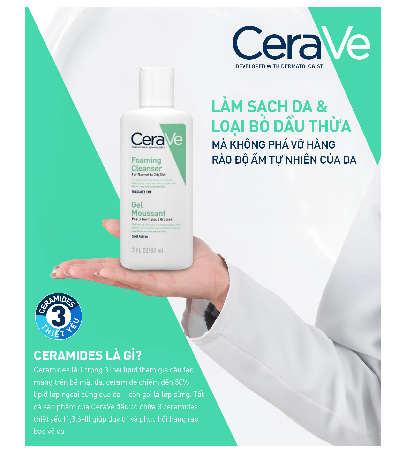 Với sự kết hợp của ba ceramides thiết yếu, niacinamide và hyaluronic acid, sản phẩm giúp làm sạch và giữ ẩm cho làn da mà không ảnh hưởng đến hàng rào bảo vệ da mặt và cơ thể.