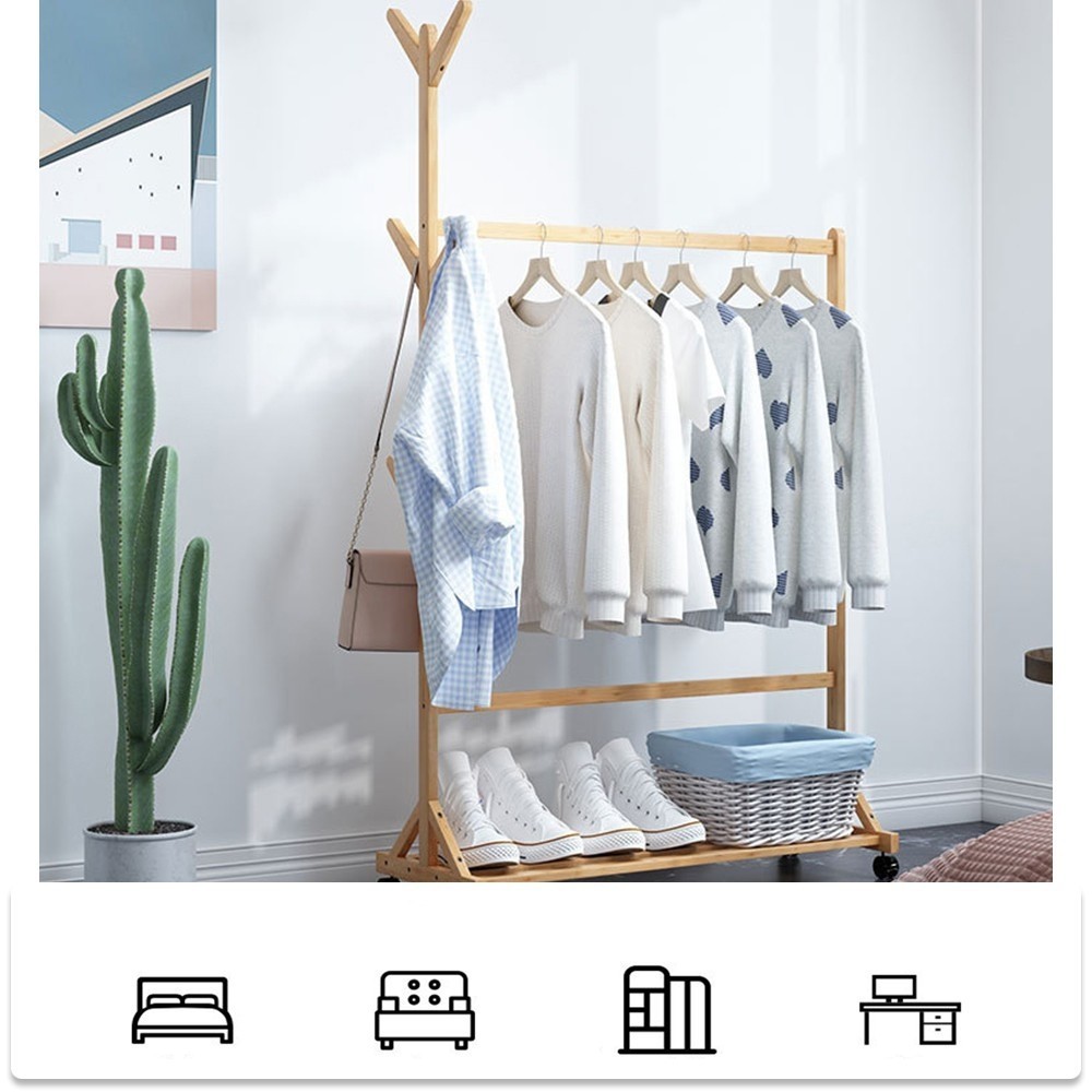 Giá Treo Quần Áo,Mũ Nón,Túi Xách, Kệ Giày Dép Thông Minh Kết Hợp Gỗ Tre Cao Cấp Với Bánh Xe Di Động