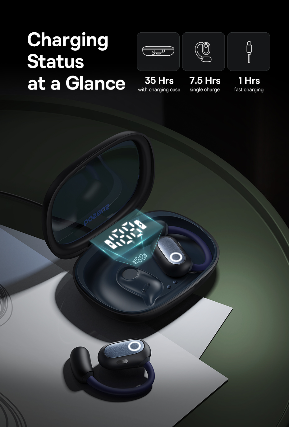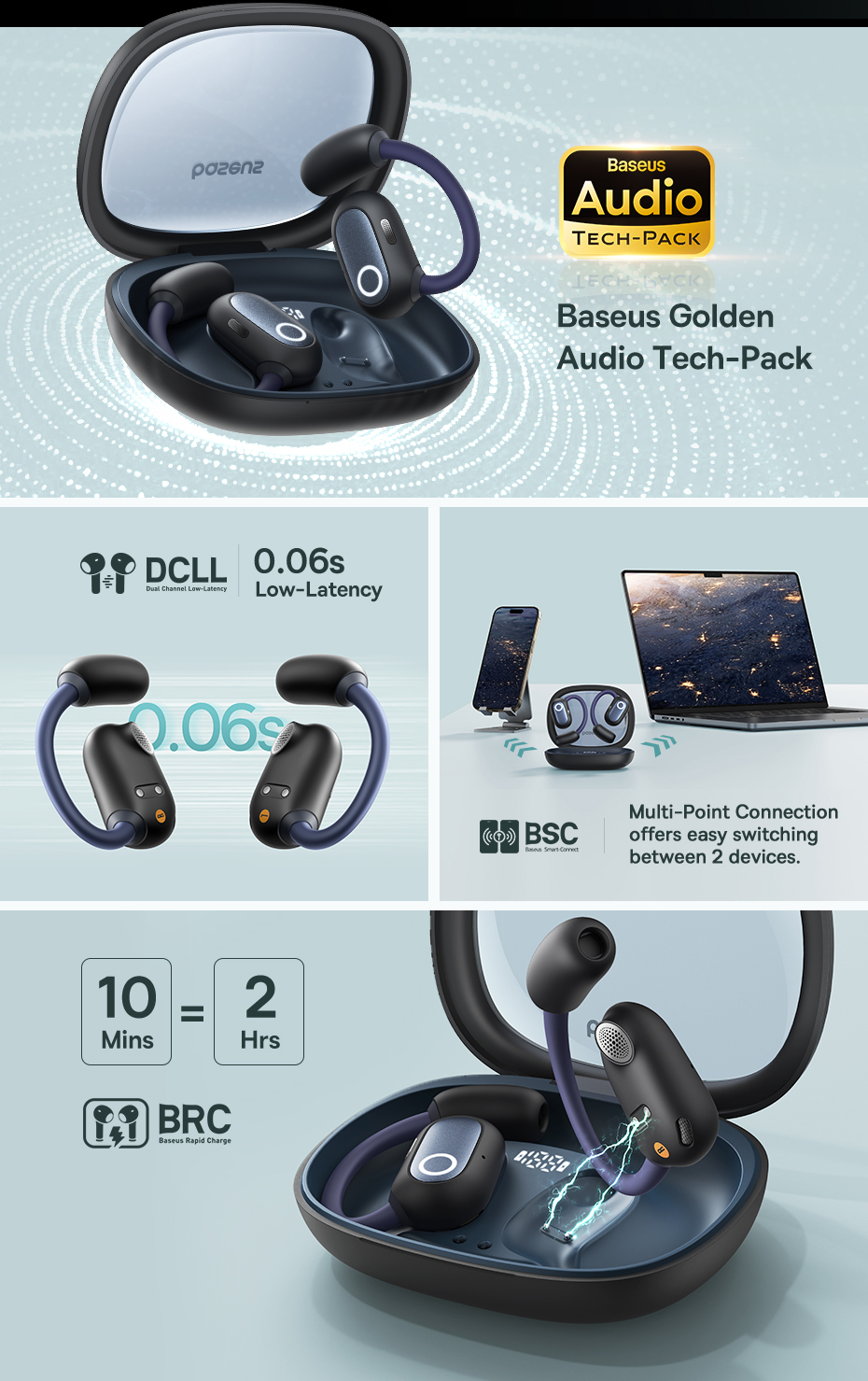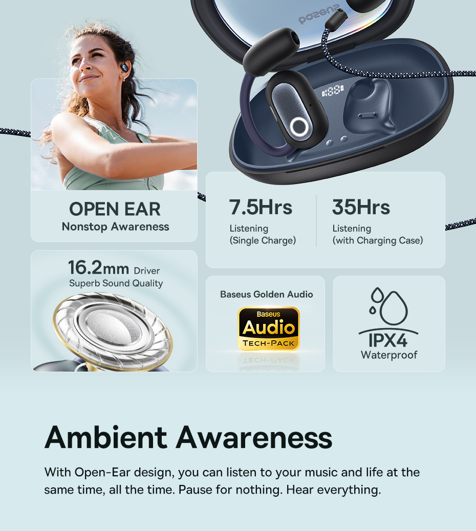Tai Nghe Baseus Eli Fit Open-Ear & Đeo Cổ 2 TRONG 1 Màn Hình LED Giảm Trễ 0.06s Chống Nước IPX4